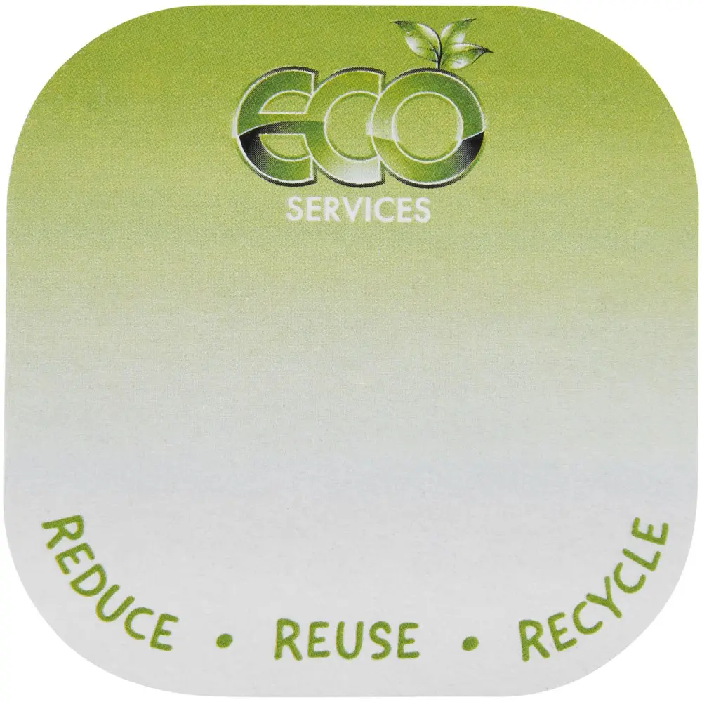 Enhance your brand visibility with these square-shaped sticky notes featuring rounded corners for a modern touch. Crafted from 50 sheets of 80 g/m² recycled paper, they offer a sustainable choice that aligns with environmentally conscious marketing strategies. Each sheet supports full-color printing, allowing for vibrant, eye-catching designs that showcase your logo or message effectively.