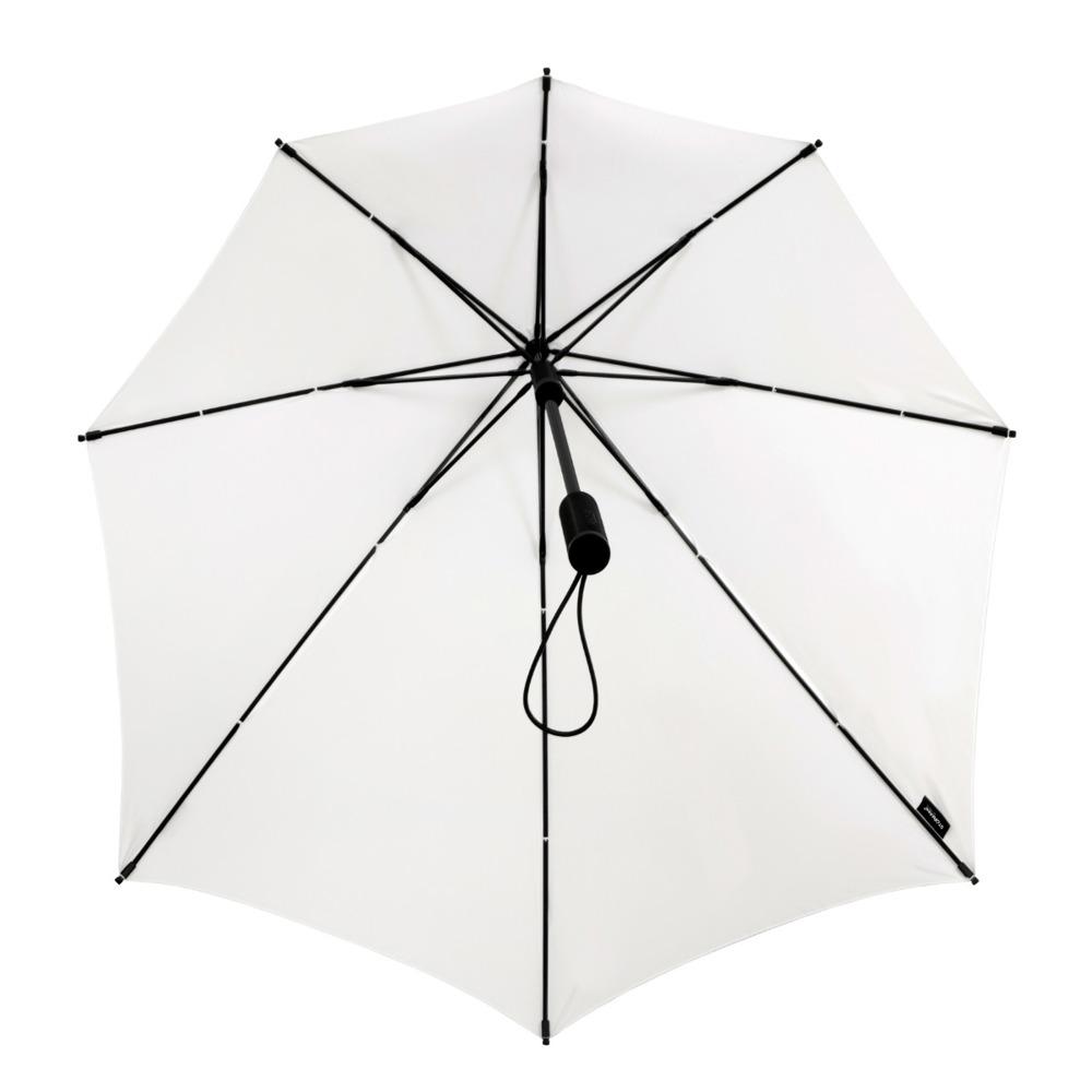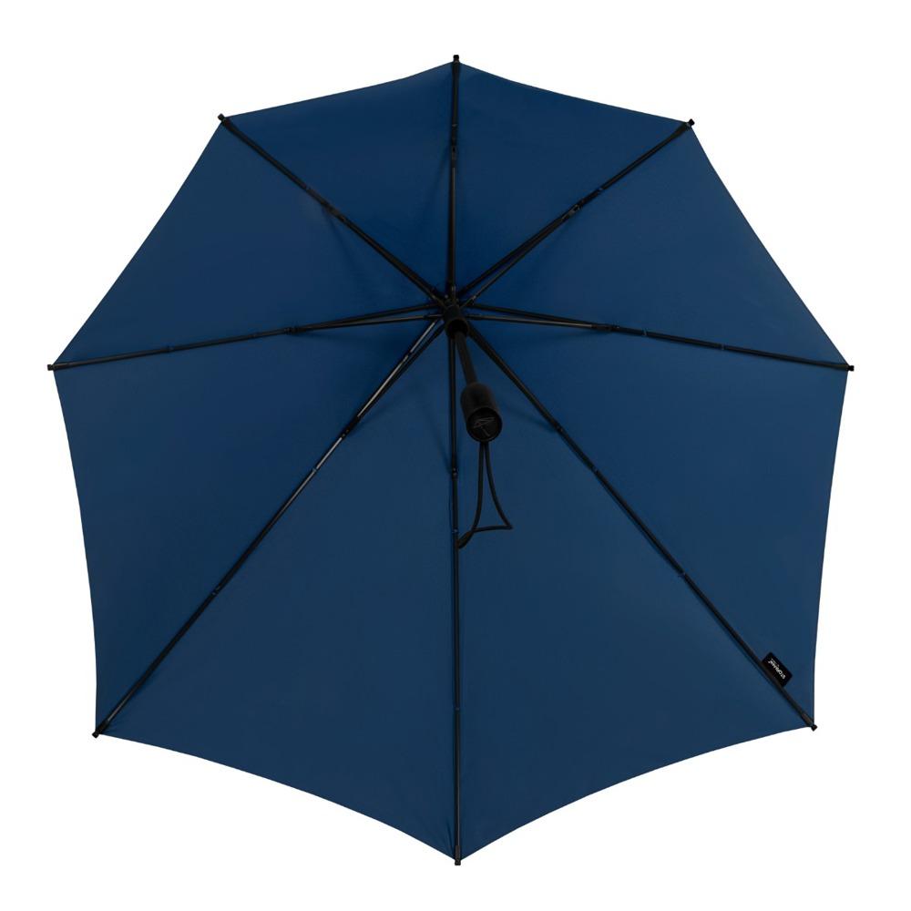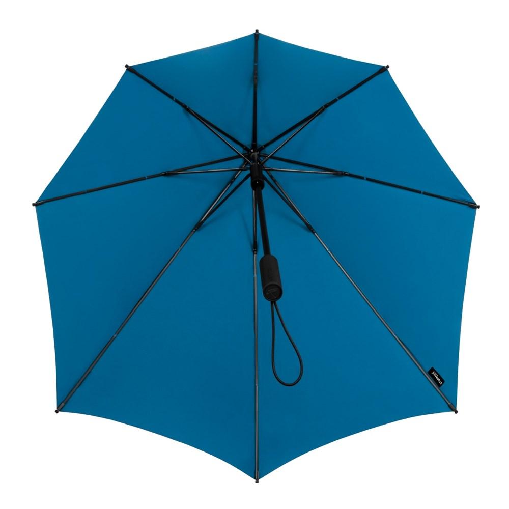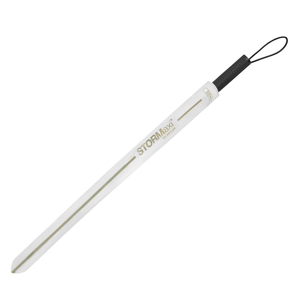 The STORMaxi® aerodynamic storm umbrella delivers superior performance and sustainability, praised by Dutch consumer program KASSA for its efficient material use. Wind tunnel tested to withstand winds up to 100 km/h, it features a fiberglass frame with reinforced joints, straight handle, and polyester pongee canopy for unmatched durability.