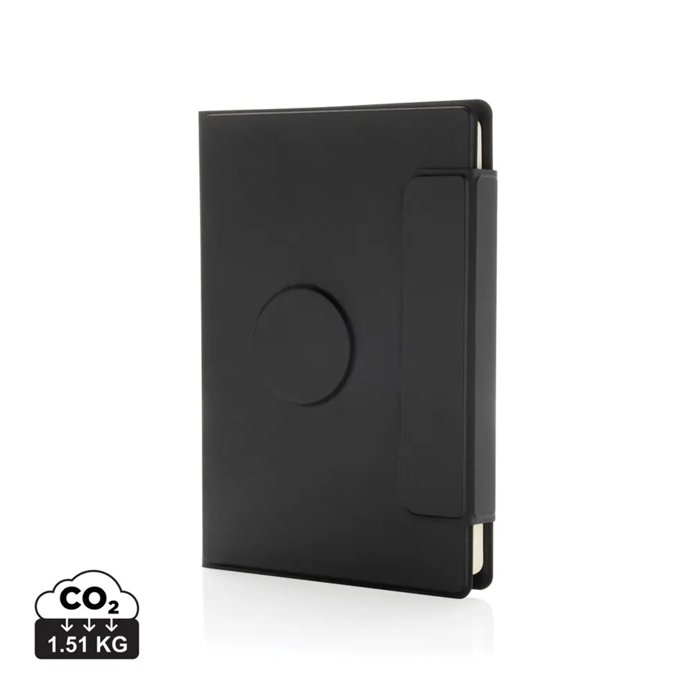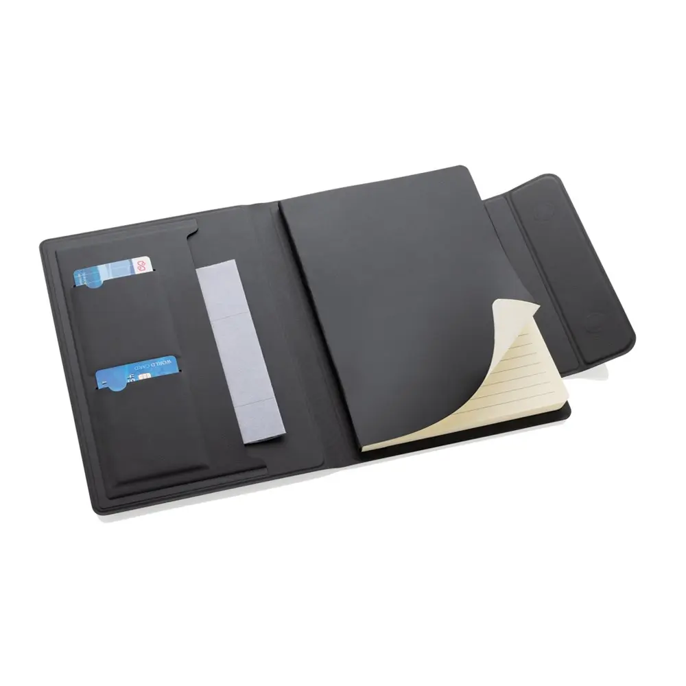 Elevate your branding with this versatile A5 portfolio, designed for marketing professionals and event organizers. Crafted from recycled polyester PU, it features a secure magnetic closure and an integrated magnetic phone holder compatible with iPhone 12 and higher models. Perfect for on-the-go professionals, it combines functionality with eco-conscious design, making it an ideal giveaway for client events or promotional campaigns.