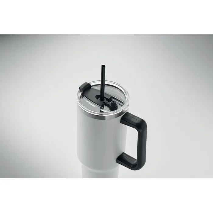 Elevate your branding with this sustainable double wall tumbler, perfect for marketing campaigns and events. Made from 90% recycled stainless steel and 10% stainless steel, it combines durability with environmental responsibility. The generous 1200 ml capacity ensures long-lasting hydration, while the double wall insulation keeps beverages hot or cold for hours.