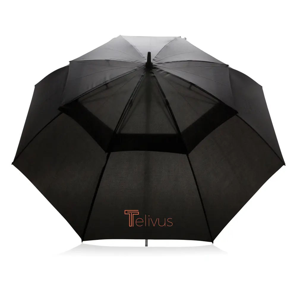 Equip your brand with this reliable storm umbrella, featuring a sturdy metal frame and fibreglass ribs for enhanced durability in tough conditions. The storm-proof design ensures it withstands strong winds, making it ideal for outdoor events or promotional giveaways where reliability matters.