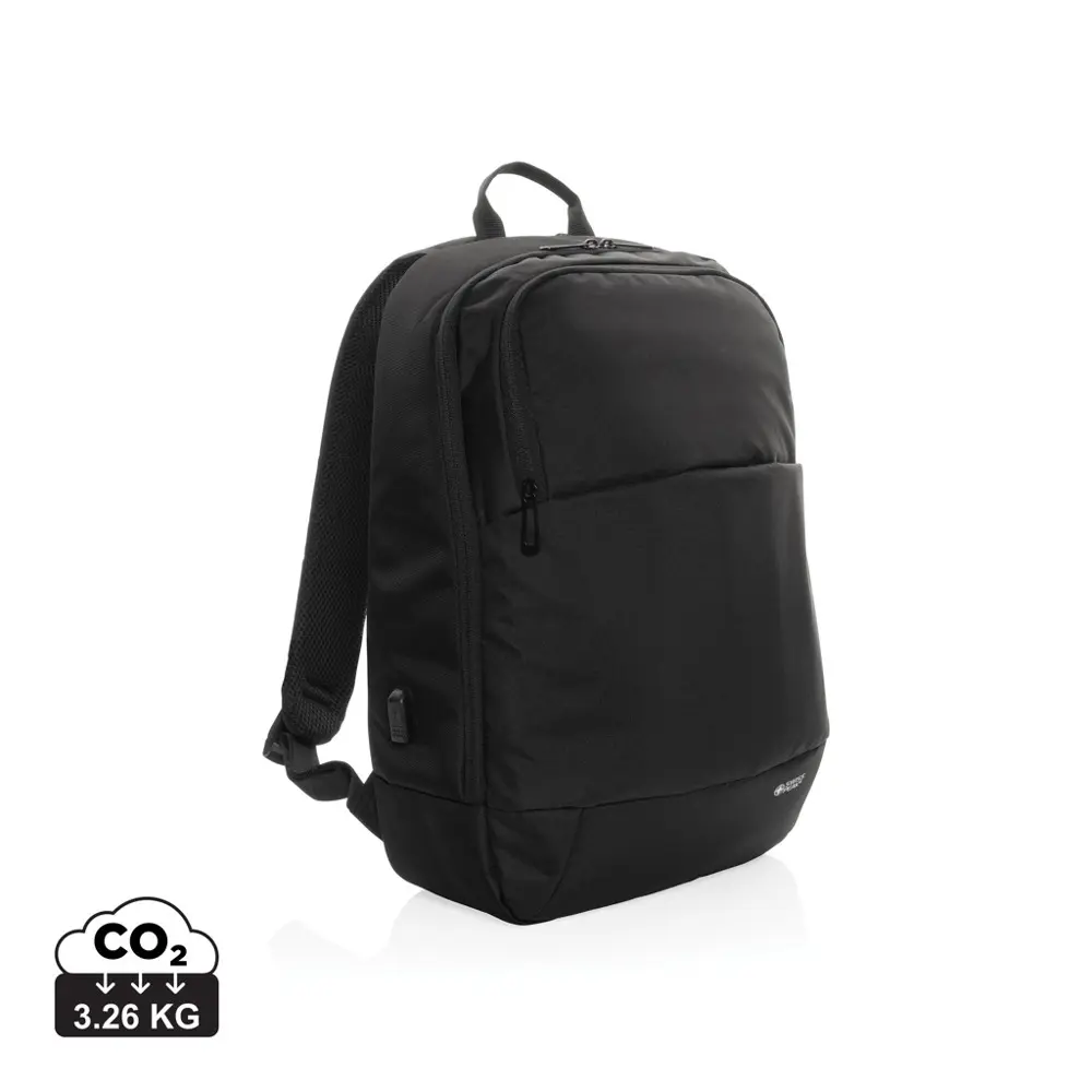 Elevate your brand's visibility with the Swiss Peak Modern 15.6" Laptop Backpack, a premium choice for personalized promotional gifts. Crafted from sustainable rPET material, this backpack repurposes 28.7 0.5L PET bottles, validated by AWARE™ tracer for genuine recycled content. It's PVC-free and complies with strict ecological standards, including AZO dyes, cadmium, formaldehyde, and more, ensuring eco-conscious appeal for your marketing campaigns.
