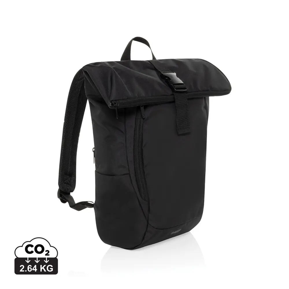 Enhance your marketing efforts with this eco-friendly laptop backpack, designed for professionals on the move. Made from 100% recycled polyester (rPET), it combines trendy aesthetics with practical features, making it an ideal promotional gift for events or client appreciation. The adjustable shoulder straps ensure comfortable carrying, while the innovative flap design extends up to 14cm for added capacity when needed.