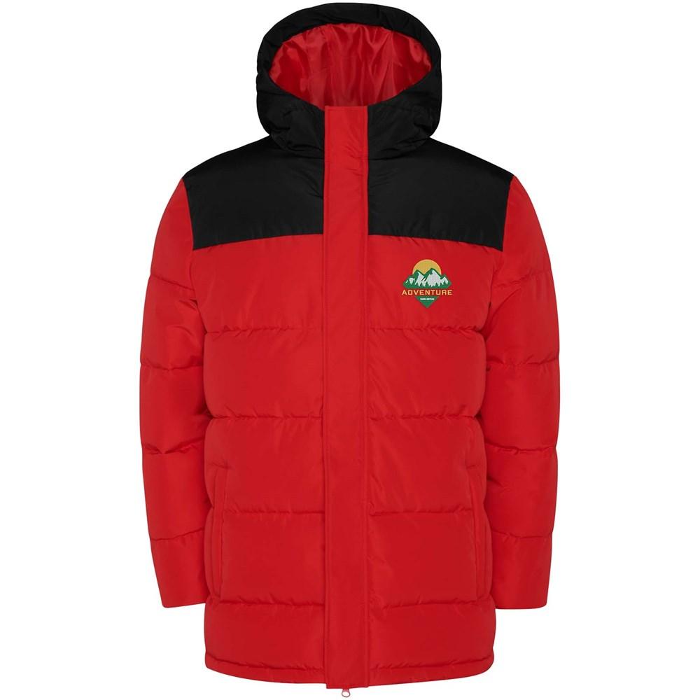 Elevate your brand visibility with the Tallin unisex insulated jacket, a premium padded jacket perfect for promotional giveaways and corporate events. Featuring a fixed hood, front zipper with protective placket, chin guard for added comfort, two secure side zip pockets, and elastic cuffs, this jacket delivers superior warmth and style in any weather.