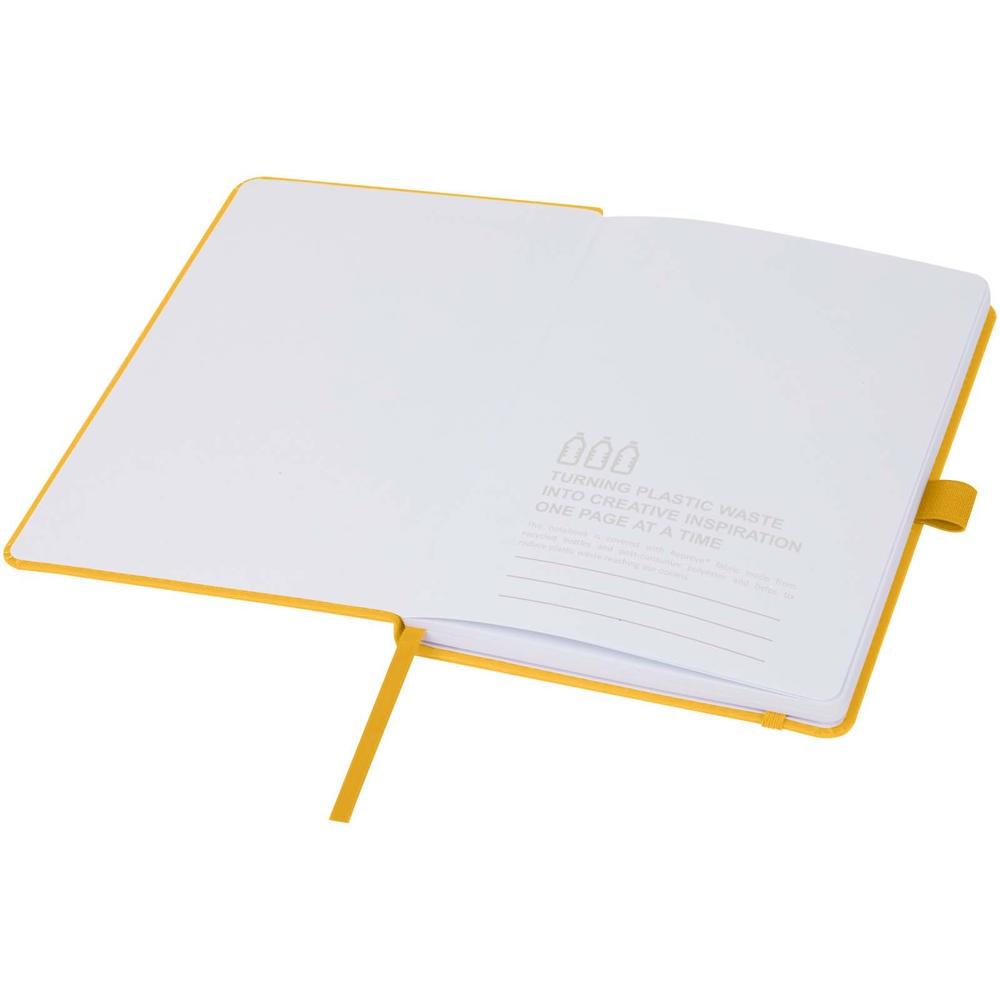 Elevate your brand with this eco-friendly promotional notebook, perfect for marketing campaigns, events, and client giveaways. Crafted with a polyester cover from ocean-bound plastic collected from coastal areas, it actively combats plastic pollution while showcasing your commitment to sustainability.