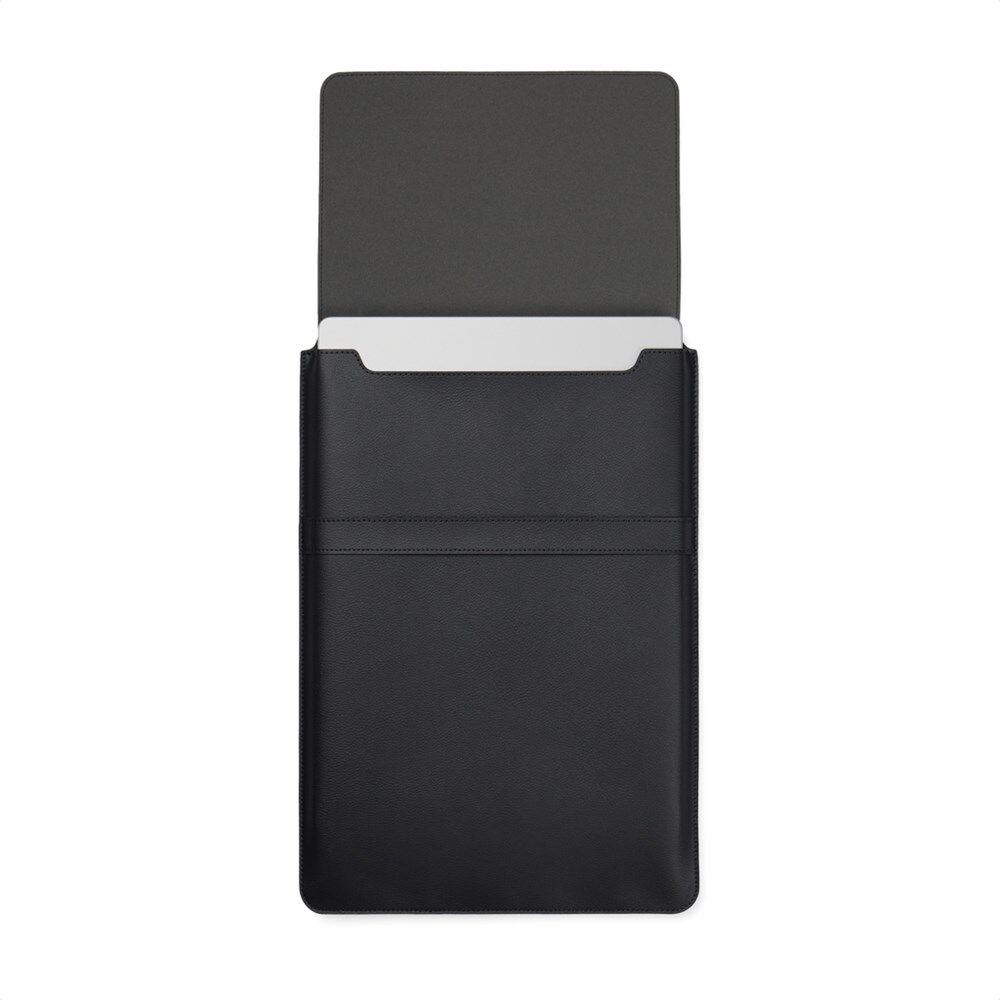 Crafted from 49% RCS-certified recycled polyester and polyurethane, this sleeve supports eco-friendly initiatives without compromising quality. It's PVC-free and complies with AZO dye and formaldehyde directives, ensuring safe, sustainable choices for your corporate events. The detailed stitching and smart flap closure provide a premium feel, while the open flap doubles as a handy mouse pad for added convenience.