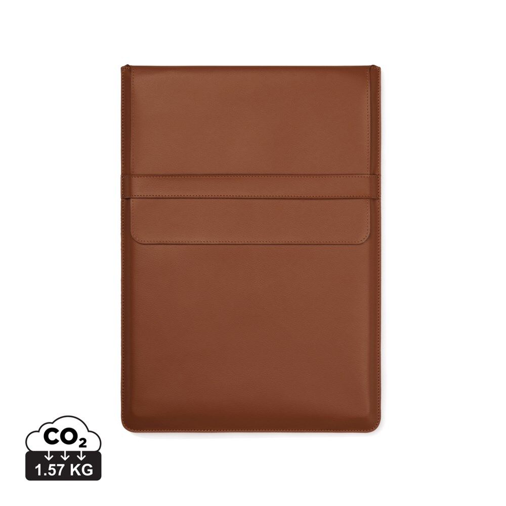Elevate your brand visibility with the VINGA Timo PU 16" laptop sleeve, an ideal personalized promotional gift for marketing campaigns and events. This sleek, modern accessory combines sophistication and functionality with a smart flap closure that doubles as a convenient mouse pad when opened. Intricate stitching adds a premium finish, ensuring it stands out as a thoughtful giveaway for clients or partners.