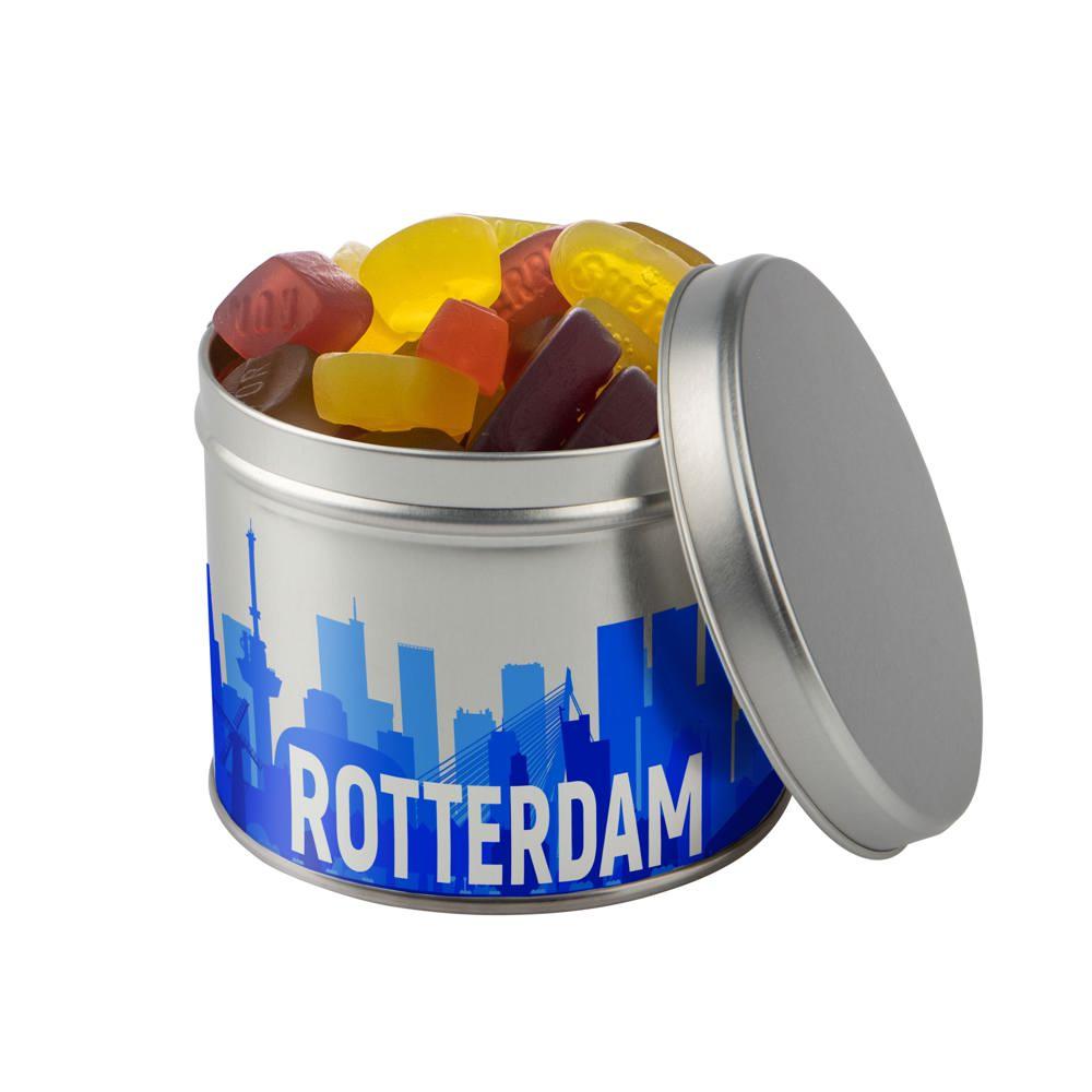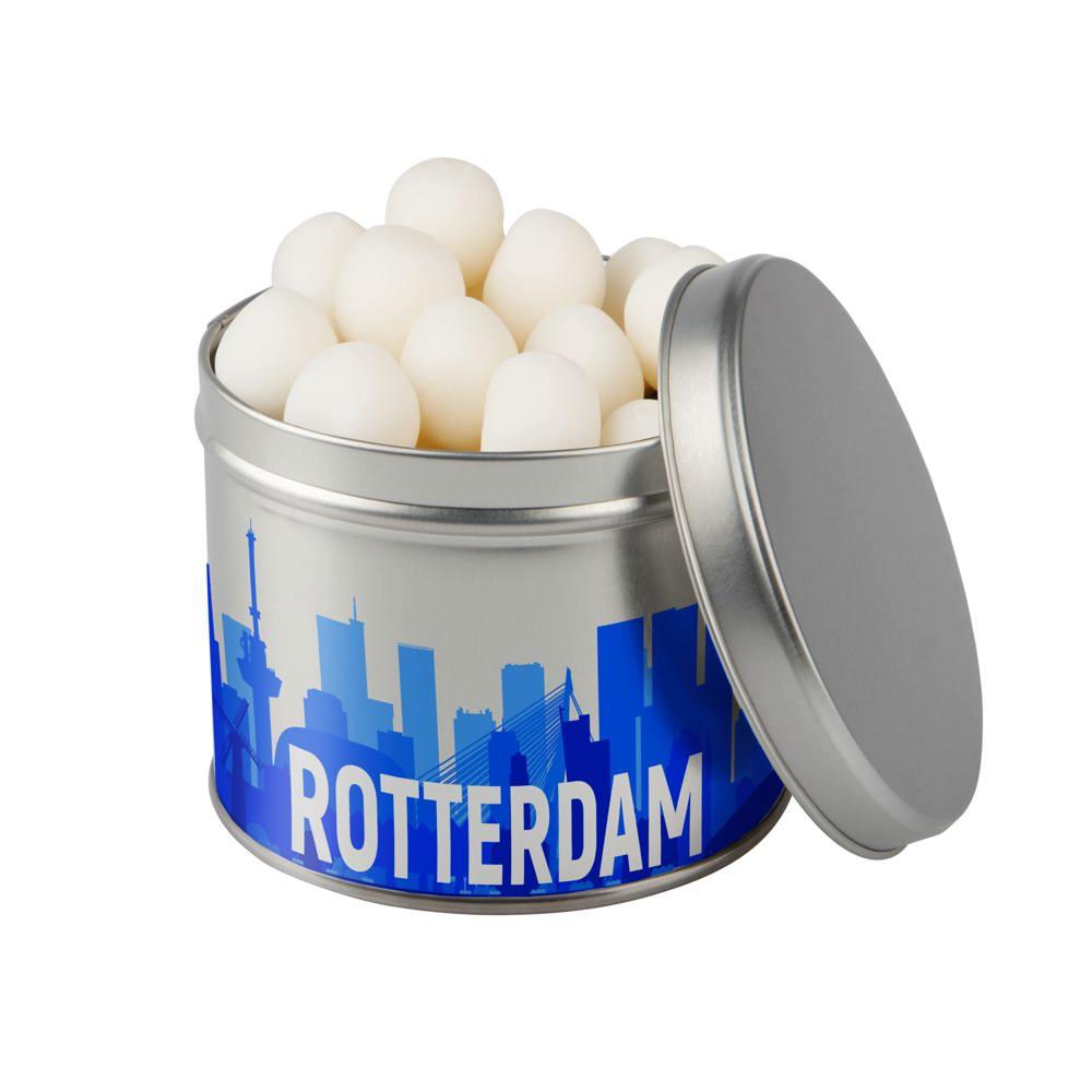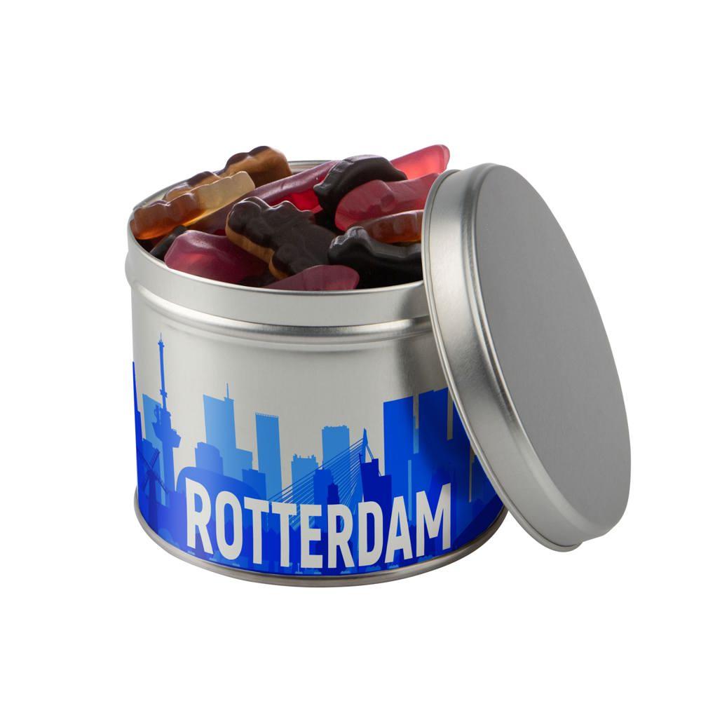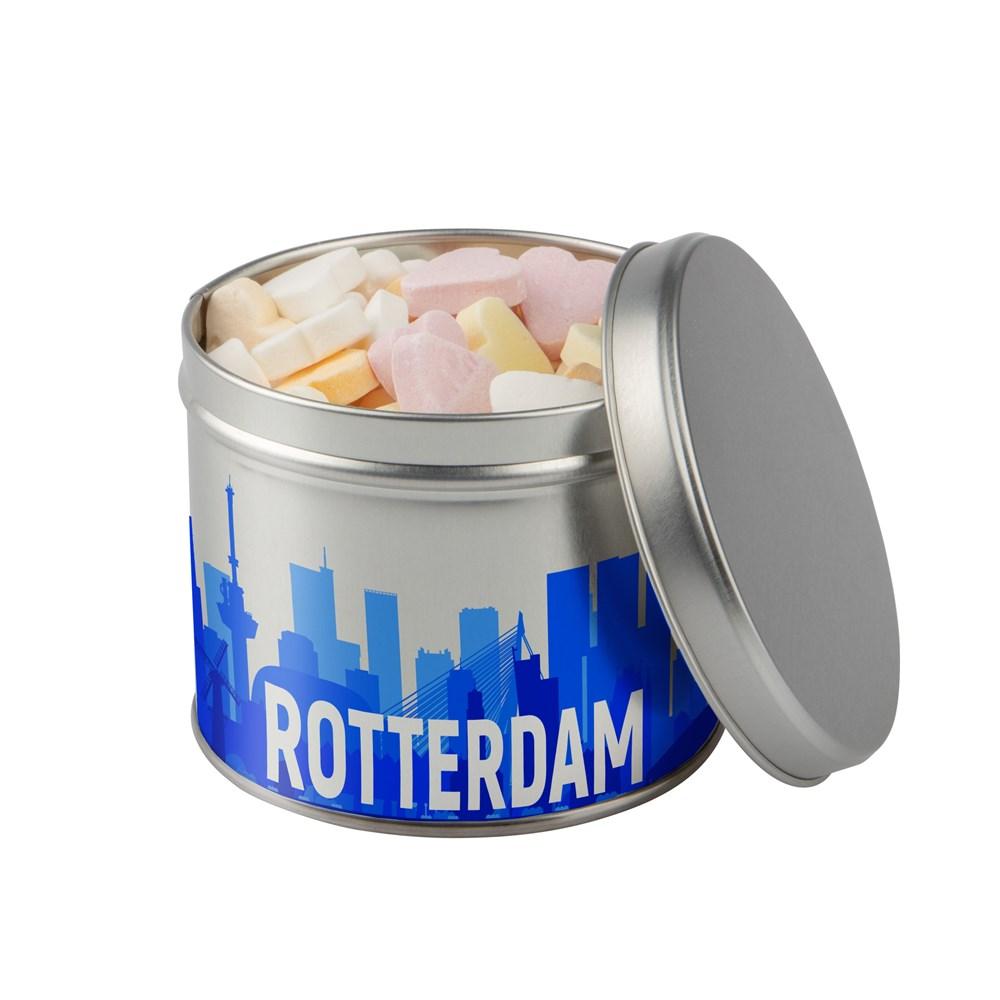 Custom printed promotional tin with metallic sweets
