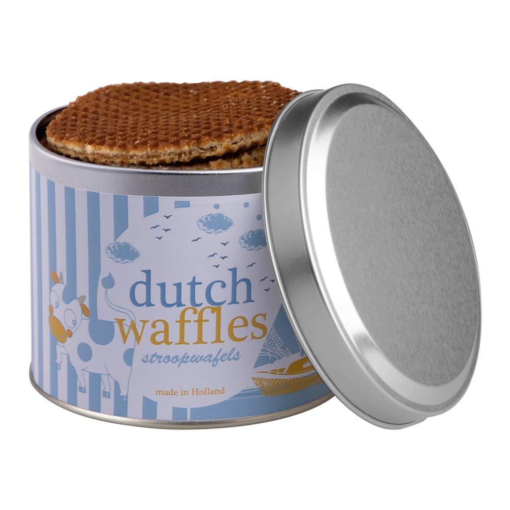 Elevate your corporate giveaways with this premium tin containing 8 fresh syrup waffles, each individually foil-wrapped for ultimate freshness and convenience. The compact 100 mm diameter tin features a full-color printed sticker wrapping all around, offering prime space for your company logo, event branding, or promotional message.