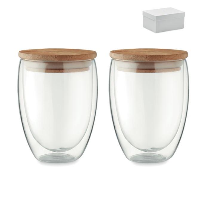 Personalized set of 2 double wall glasses 350 ml with bamboo lids