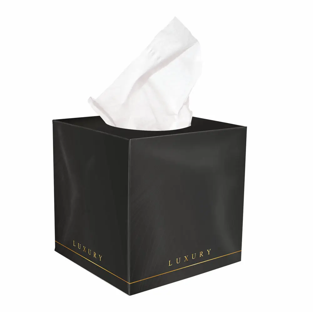 Discover our square tissue box, expertly crafted from durable paper for a premium feel. This versatile holder features foil stamping, allowing seamless integration of your company logo or custom design. Pre-filled with 50 high-quality 3-ply tissues, it ensures immediate usability right out of the package.