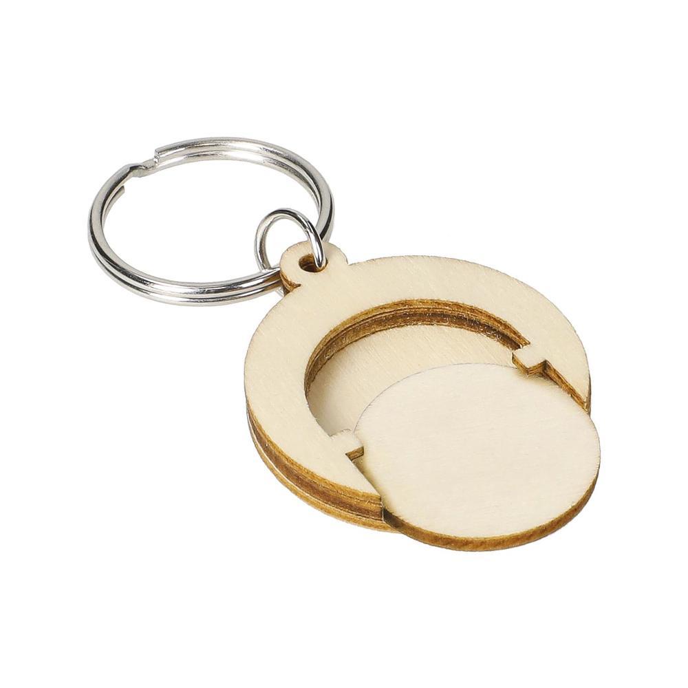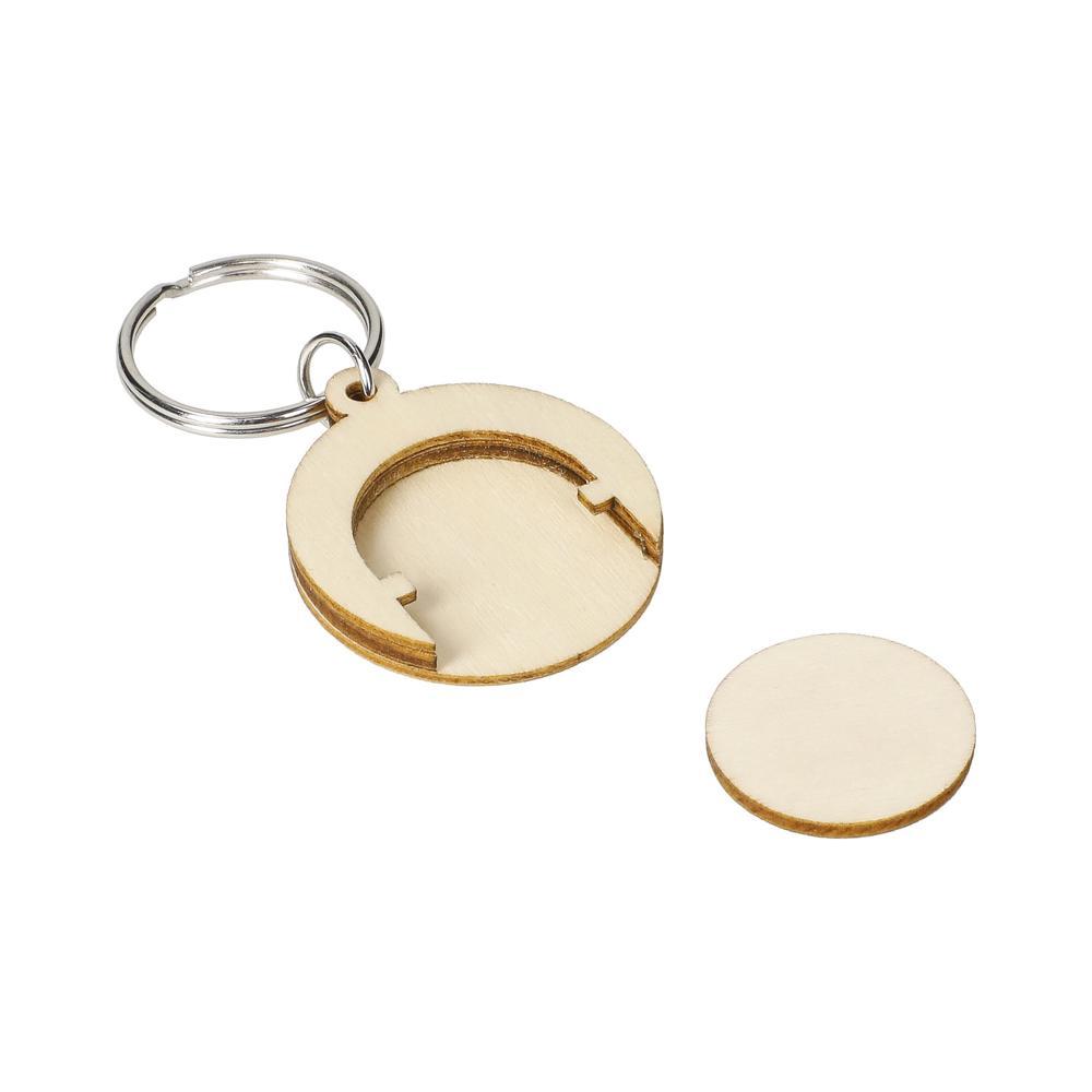 Custom round wooden keyring with trolley token
