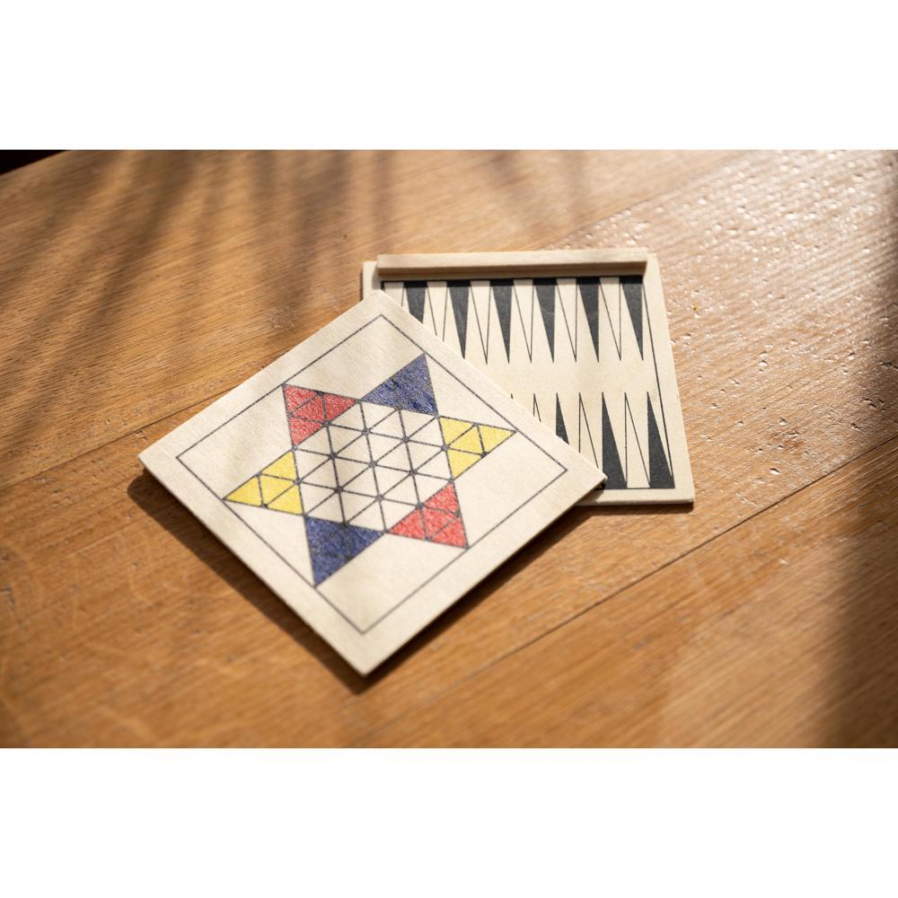 Elevate your brand visibility with this customizable travel game set, perfect for marketing professionals, event organizers, and corporate gifting. Crafted from durable pine wood in a compact 12.5 x 12.5 x 3.2 cm size, it combines four timeless classics—Ludo, Chess, Backgammon, and Halma—into one portable package. Includes all essential chess pieces, checkers for every game, and two small dice for instant fun.