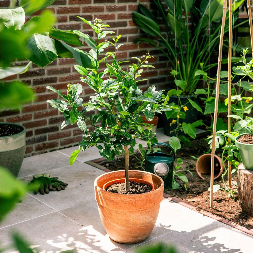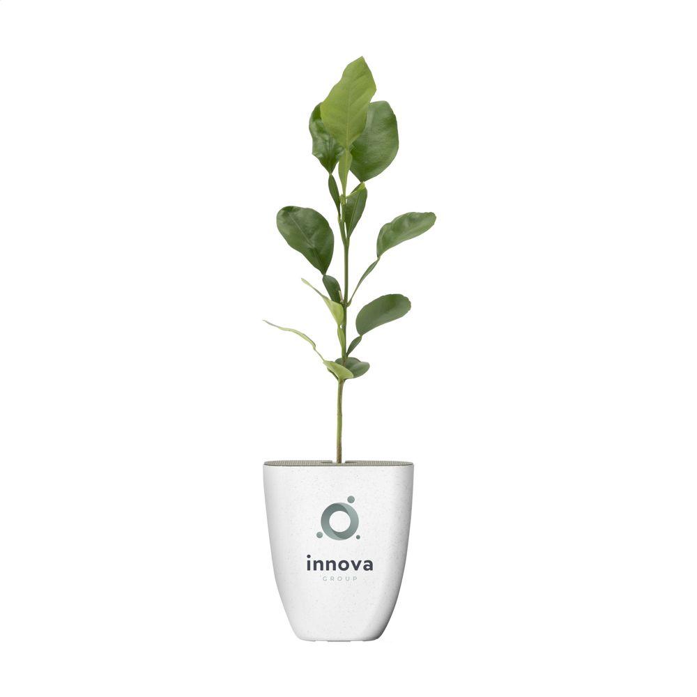 Elevate your promotional gifts with the Treemore Kaffir lime citrus tree (Citrus hystrix), a unique letterbox tree perfect for branding and personalization with your logo. Sourced from Dutch nurseries, this seasonal tree arrives in a bio-based flower pot made from elephant grass fibres, ready to fit through any letterbox. The FSC® certified packaging and information booklet are 100% recyclable, ensuring an eco-friendly impression.