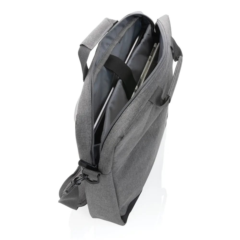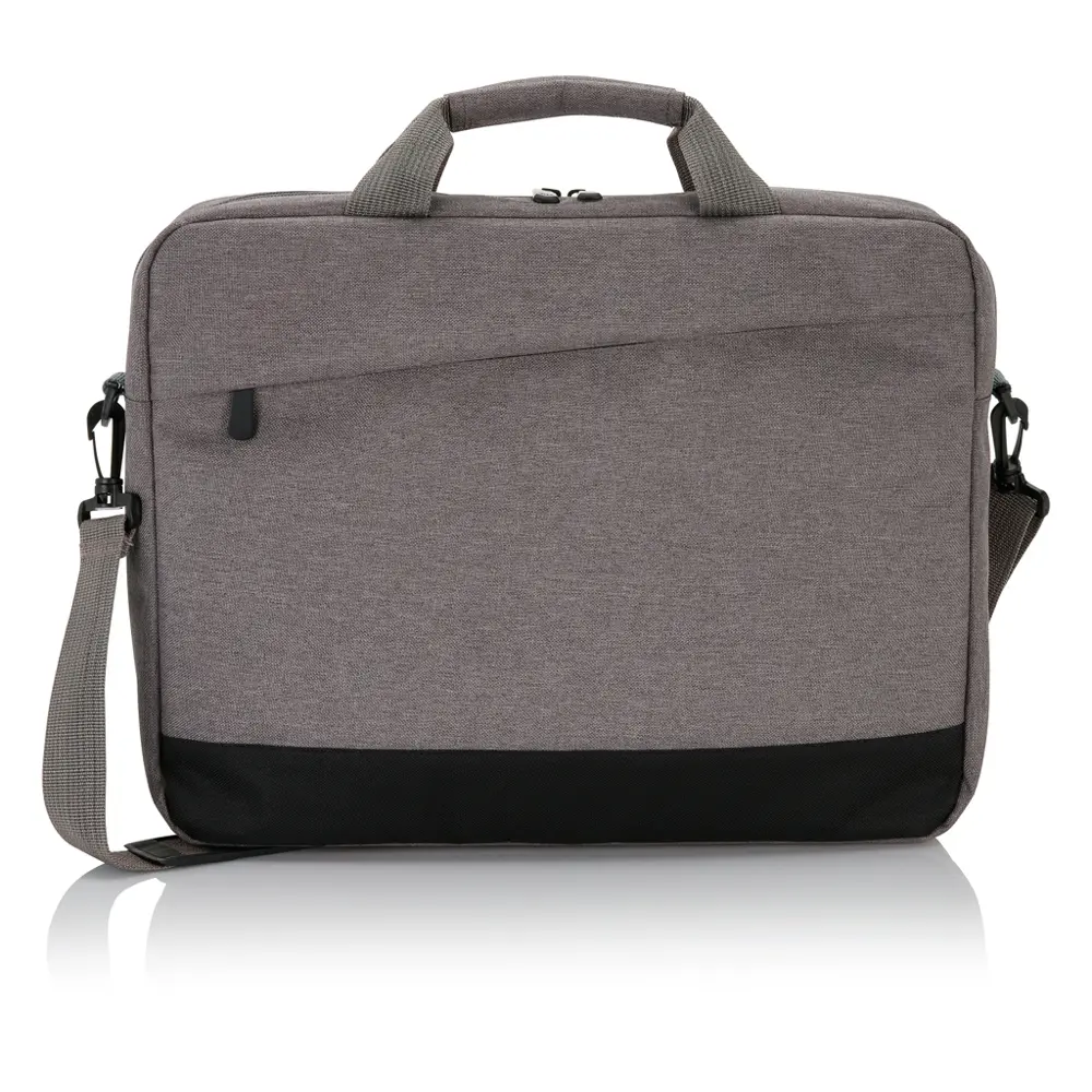 Elevate your brand's visibility with the Trend 15” laptop bag, a stylish and durable 600D duo-tone polyester essential designed for 15.6” laptops and tablets. This versatile bag features a spacious two-sided main compartment to securely store your gear, ensuring easy organization on the go. The front slanted zippered pocket offers quick access to accessories, making it perfect for busy professionals.
