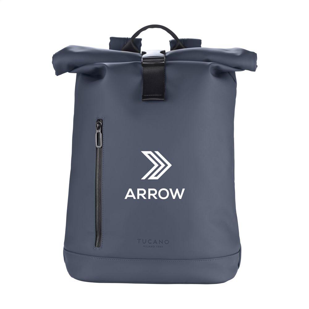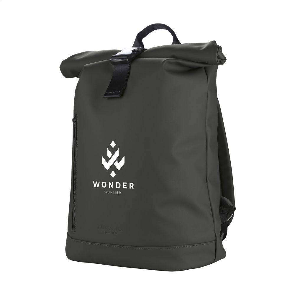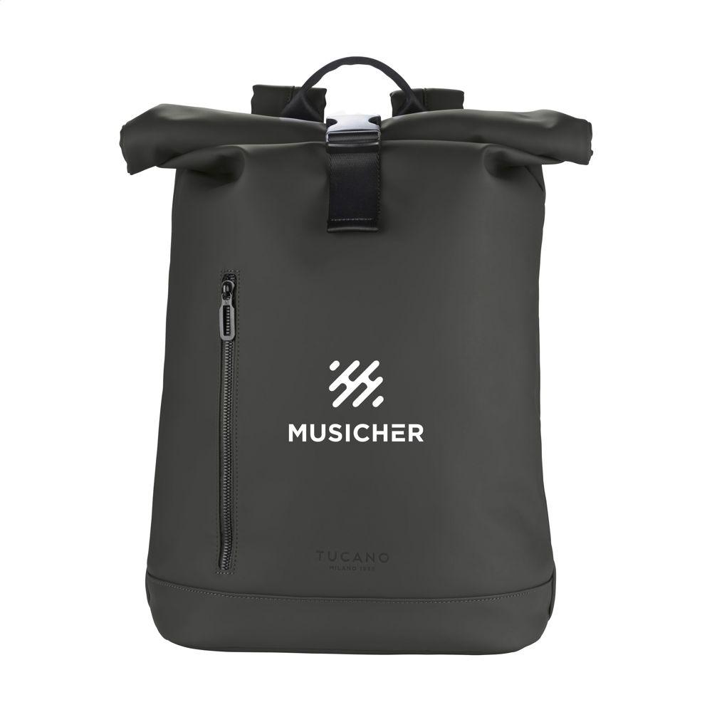 Elevate your brand with this stylish, customizable Tucano roll-top backpack, perfect for promotional giveaways at events or client appreciation gifts. Crafted from innovative rubber-like materials made from recycled plastic—including 22 recycled PET bottles—this sustainable choice appeals to environmentally conscious audiences while showcasing your commitment to green initiatives.