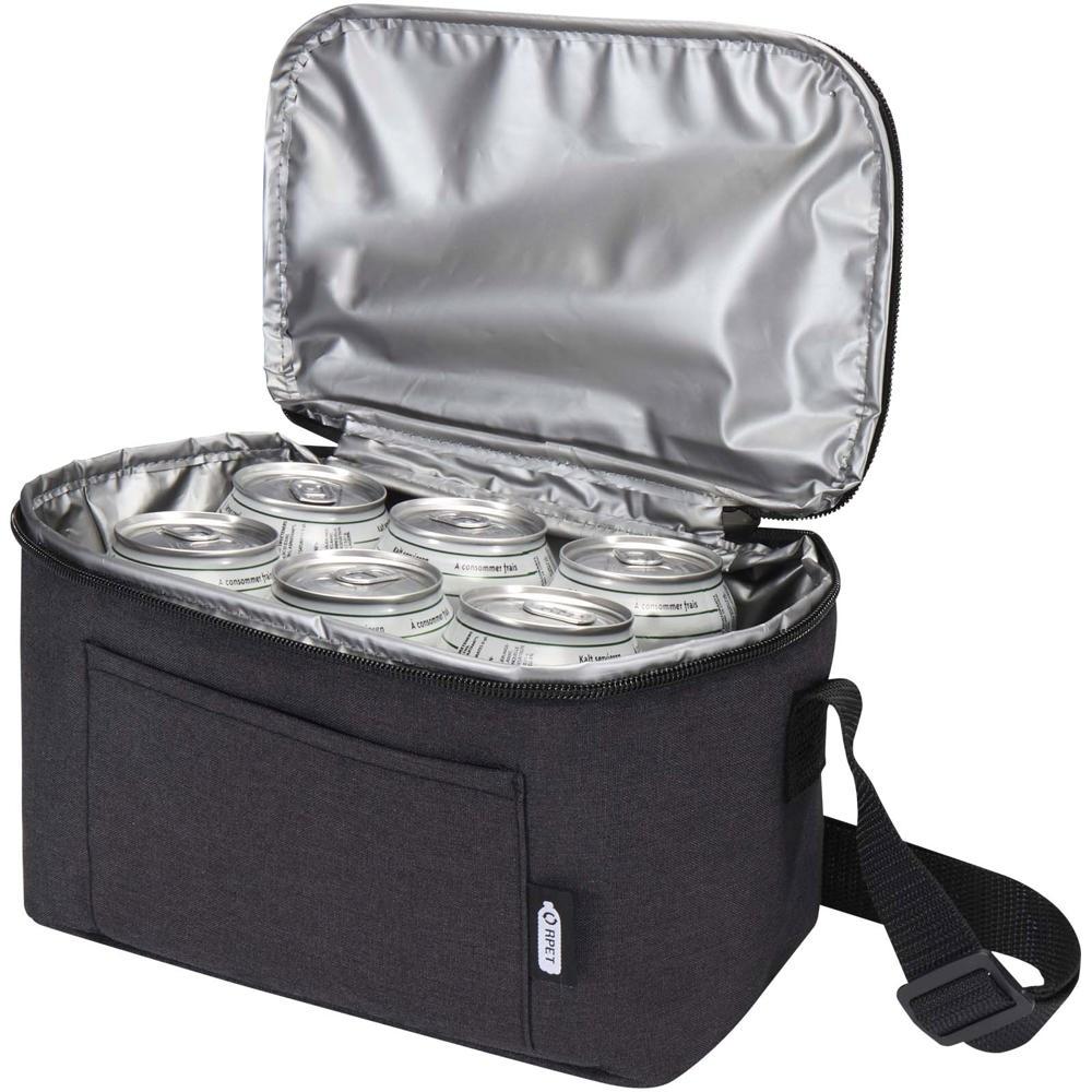 Elevate your promotional giveaways with this GRS-certified recycled 6-can cooler bag, perfect for marketing professionals and event organizers. Ideal for outdoor events, trade shows, or client appreciation gifts, it keeps drinks and snacks cool on hot days while showcasing your brand through custom logo printing.