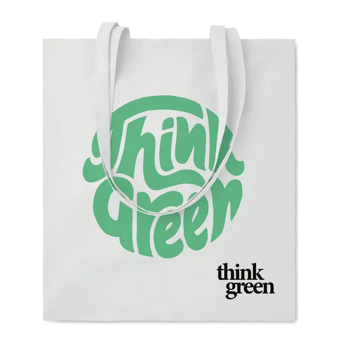 Discover the perfect eco-conscious choice for your promotional needs. This organic cotton shopping bag features long handles for comfortable carrying, making it ideal for everyday use or as a branded giveaway.