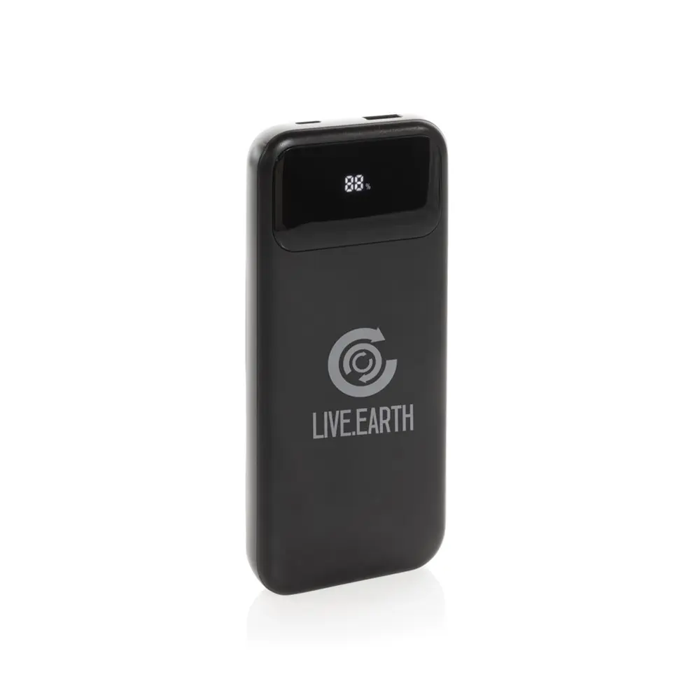 Crafted from 23% recycled ABS and TPE with RCS certification, it's eco-friendly and PVC-free—perfect for sustainable corporate gifting. The digital display shows remaining power for user convenience, while compliance with EU directives ensures safety and quality. Personalize with your logo for impactful promotional giveaways that keep your brand charged and visible at events or client outreach.