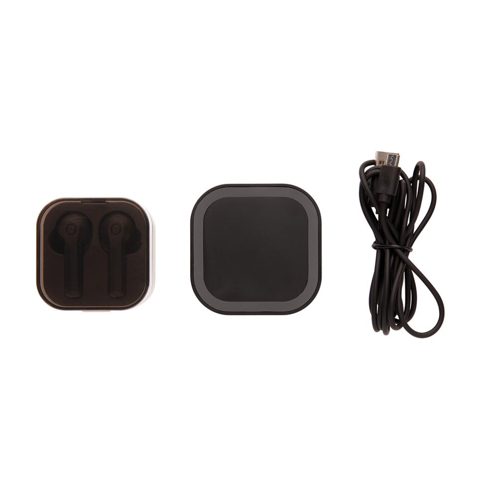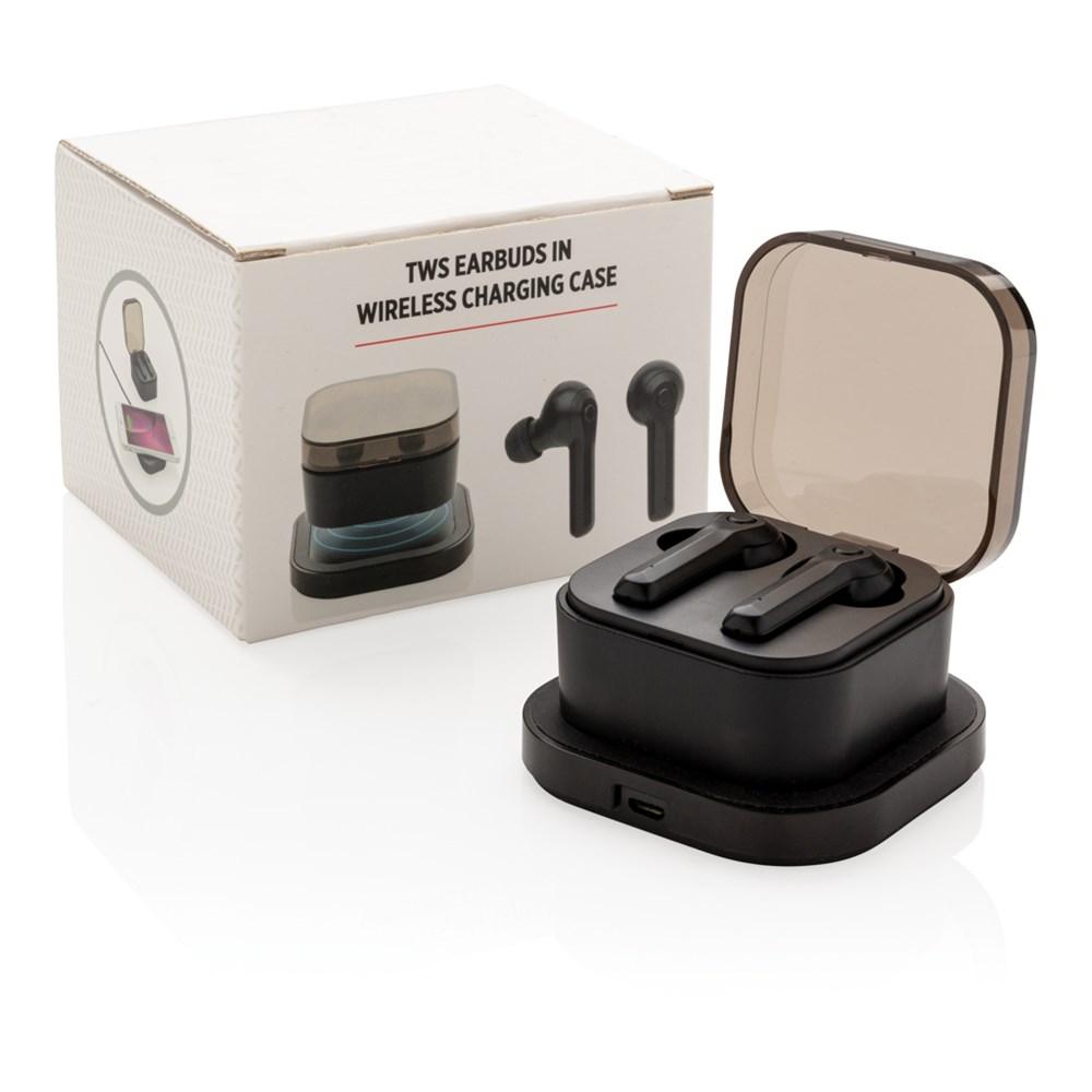 Elevate your brand with these customizable TWS earbuds in a wireless charging case, the ultimate promotional giveaway for marketing campaigns and events. Offer recipients true wireless freedom for stereo music playback or mono calls, with seamless Bluetooth 4.2 connectivity up to 10 meters. The stylish case supports QI wireless charging via the included 5W charger—perfect for powering earbuds or compatible smartphones like latest Androids and iPhone 8+. Enjoy up to 3 hours of playtime from the 50mAh battery, with quick 2-hour recharges, plus assorted ear tips for a secure fit.