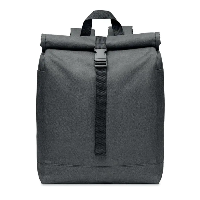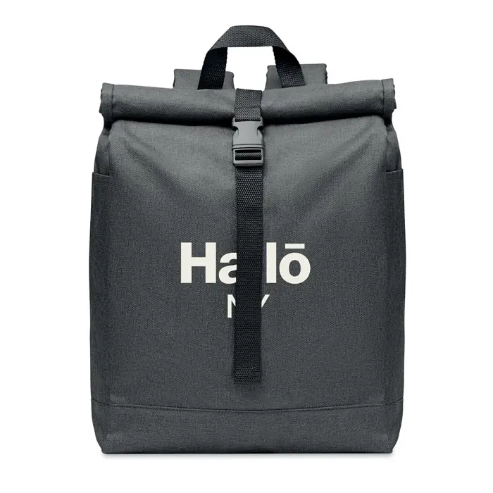 Discover the UDINE 2-tone backpack, made from durable 600D RPET recycled polyester for an eco-friendly twist on classic functionality. Its secure roll-top closure ensures belongings stay safe, making it a reliable choice for everyday use or event essentials.