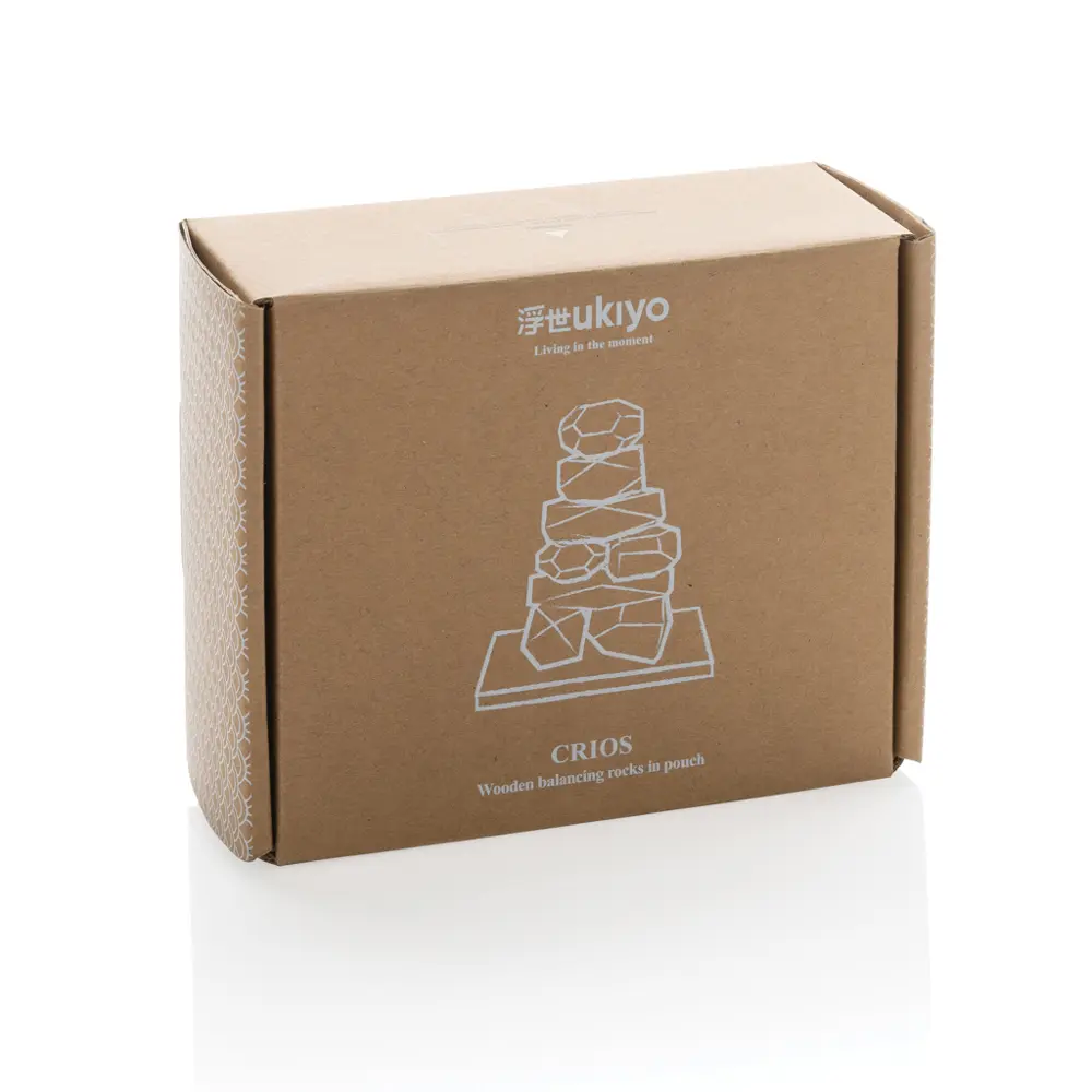 Elevate your brand's promotional game with Ukiyo Crios wooden balancing rocks, ideal for custom logo printing as unique giveaways. These FSC®-certified pine wood pieces challenge balancing skills while creating stunning, rustic centerpieces for offices or events. Crafted from sustainable wood with natural grain for an authentic touch, they're packaged in a GRS-certified recycled polyester pouch for eco-friendly appeal. Perfect for marketing teams and event organizers seeking engaging, branded items that promote mindfulness and environmental responsibility. Complies with EU standards including Formaldehyde directive EN 14184-1 and Deforestation-free Regulation.