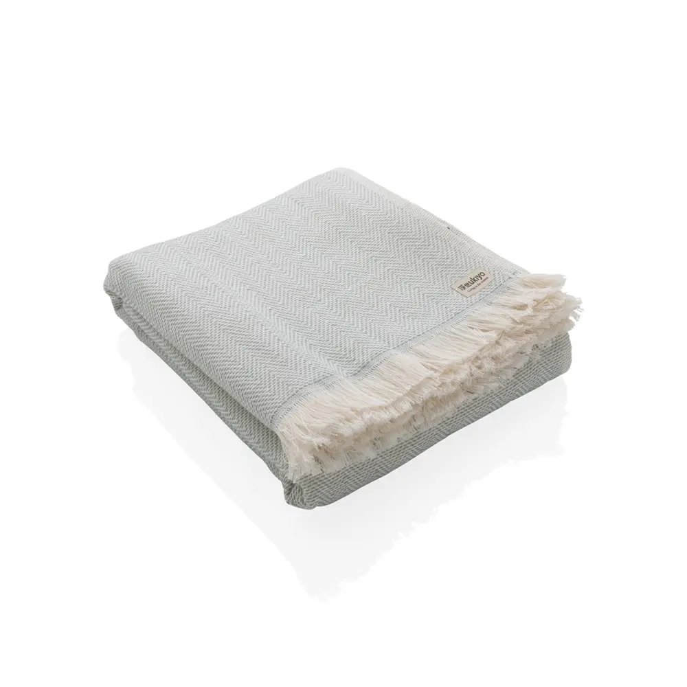 Elevate your brand's promotional game with the Ukiyo Hisako AWARE™ 4 Seasons Towel/Blanket, a luxurious 100x180 cm essential crafted from 22% recycled cotton for ultimate softness and sustainability. Certified by AWARE™ tracer, it ensures genuine eco-credentials, making it an ideal choice for environmentally conscious marketing campaigns.