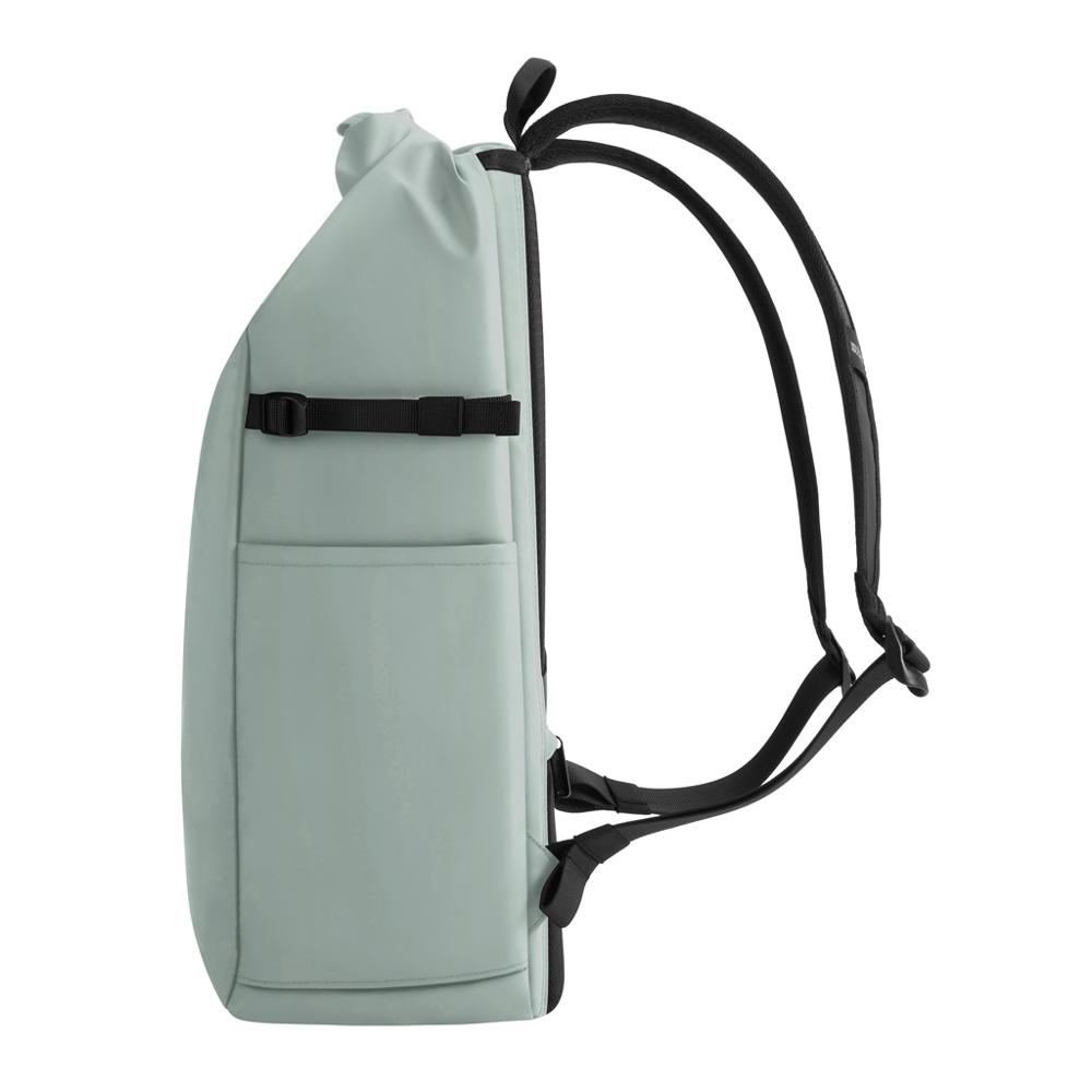 Inside, a padded compartment fits up to 16-inch laptops, and mesh pockets organize essentials effortlessly. Crafted from Aware™ traceable recycled polyester with a soft-touch water-resistant PU coating and 11% recycled content, it's eco-friendly and PVC-free. Registered design® ensures exclusivity.