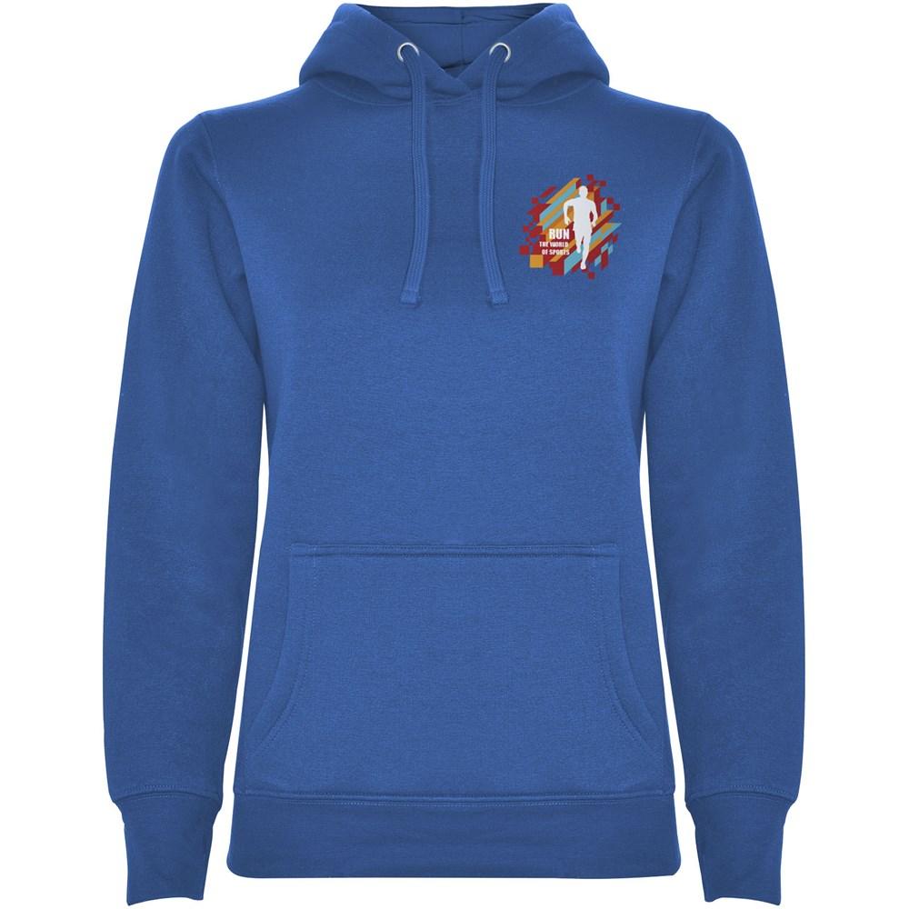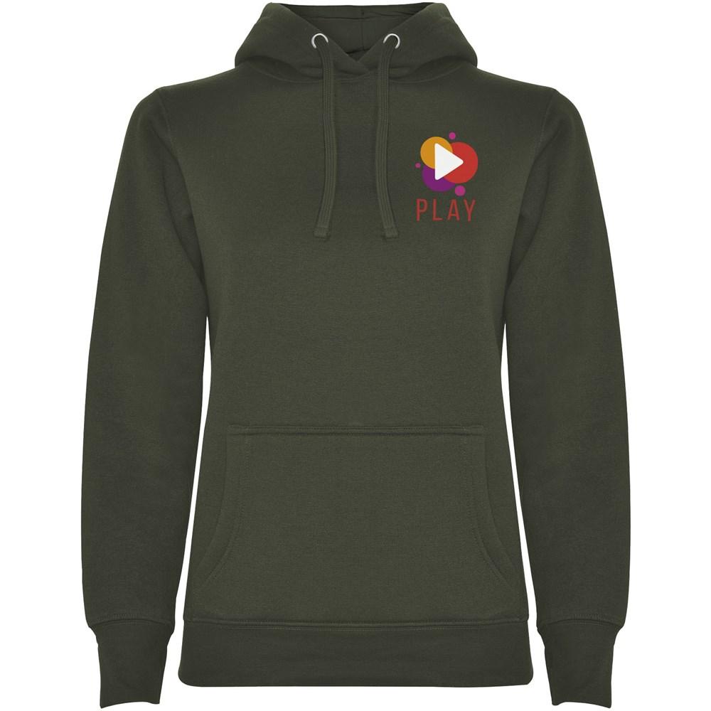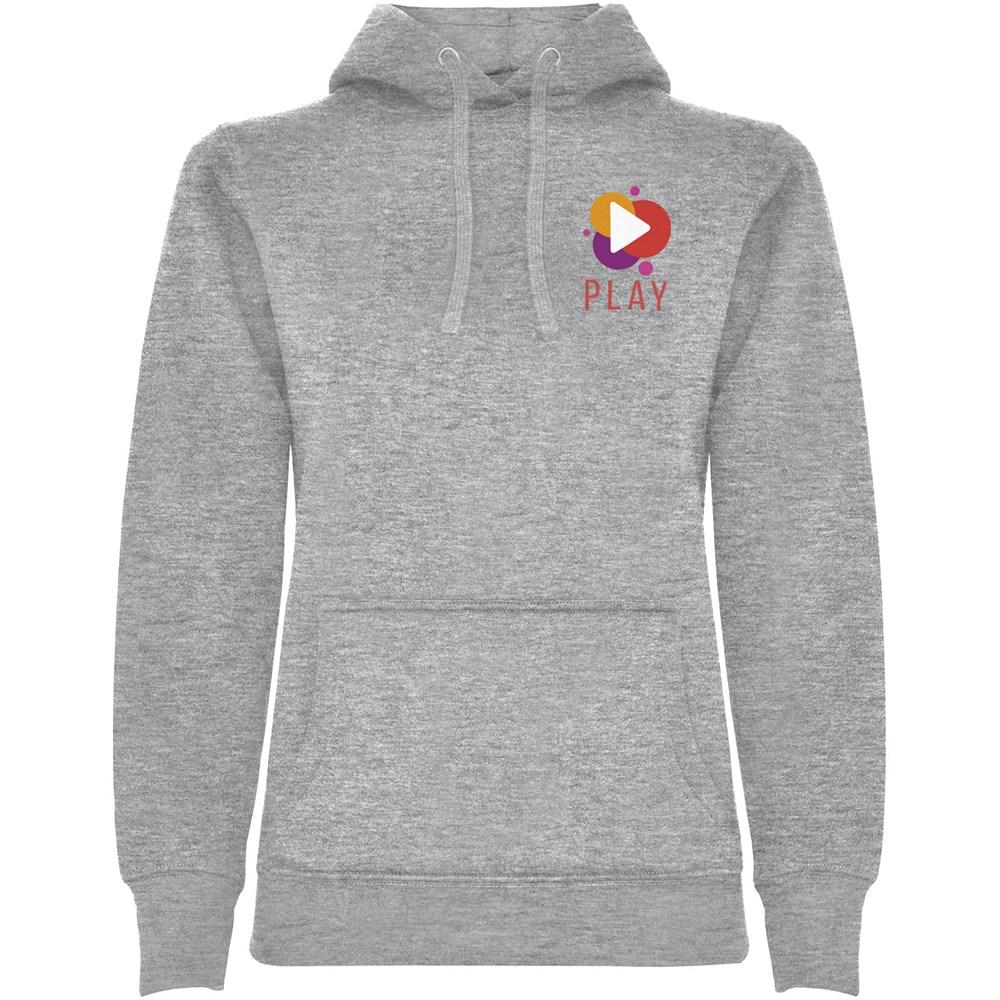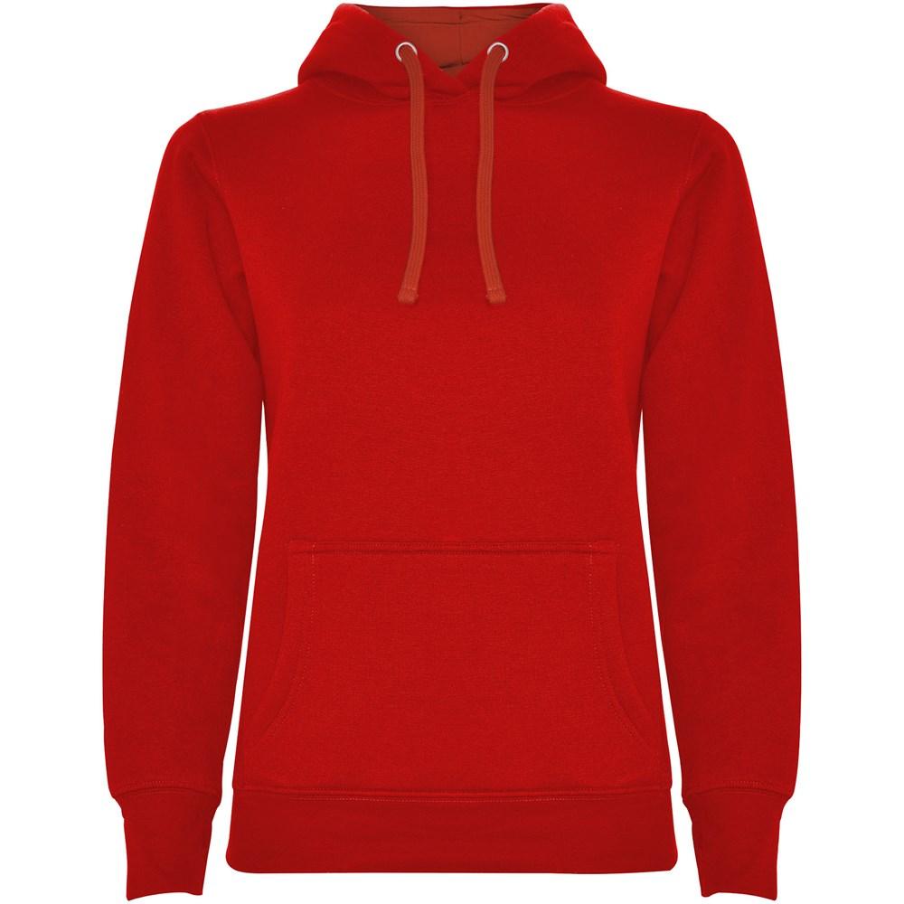 Elevate your brand visibility with the Urban women's hoodie, a fitted-cut sweatshirt featuring a premium double-fabric hood, adjustable drawcord, and covered seams for a sleek finish in the collar and kangaroo pocket. Stretchy 1x1 elastane ribbing at cuffs and hem ensures all-day comfort, while thumb-slit details and a removable label make it ideal for custom logo printing.