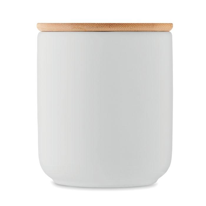 Elevate your brand visibility with the VEIKA Plant based wax candle 200 gr, a sustainable choice for promotional giveaways and corporate events. Infused with a refreshing fresh linen fragrance, this 200g candle is made from eco-friendly plant-based wax housed in a durable stoneware jar topped with a natural bamboo lid, delivering up to 36 hours of consistent burn time.