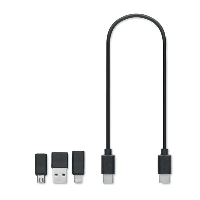 The VERSA 3-in-1 Cable Set is a versatile charging and data transfer solution featuring Type-C to Type-C, USB-A, micro-B, and Lightning connectors for seamless compatibility across devices. Ideal for marketing professionals and event organizers, this multi-functional cable ensures recipients stay connected on the go, making it a smart choice for branded giveaways.