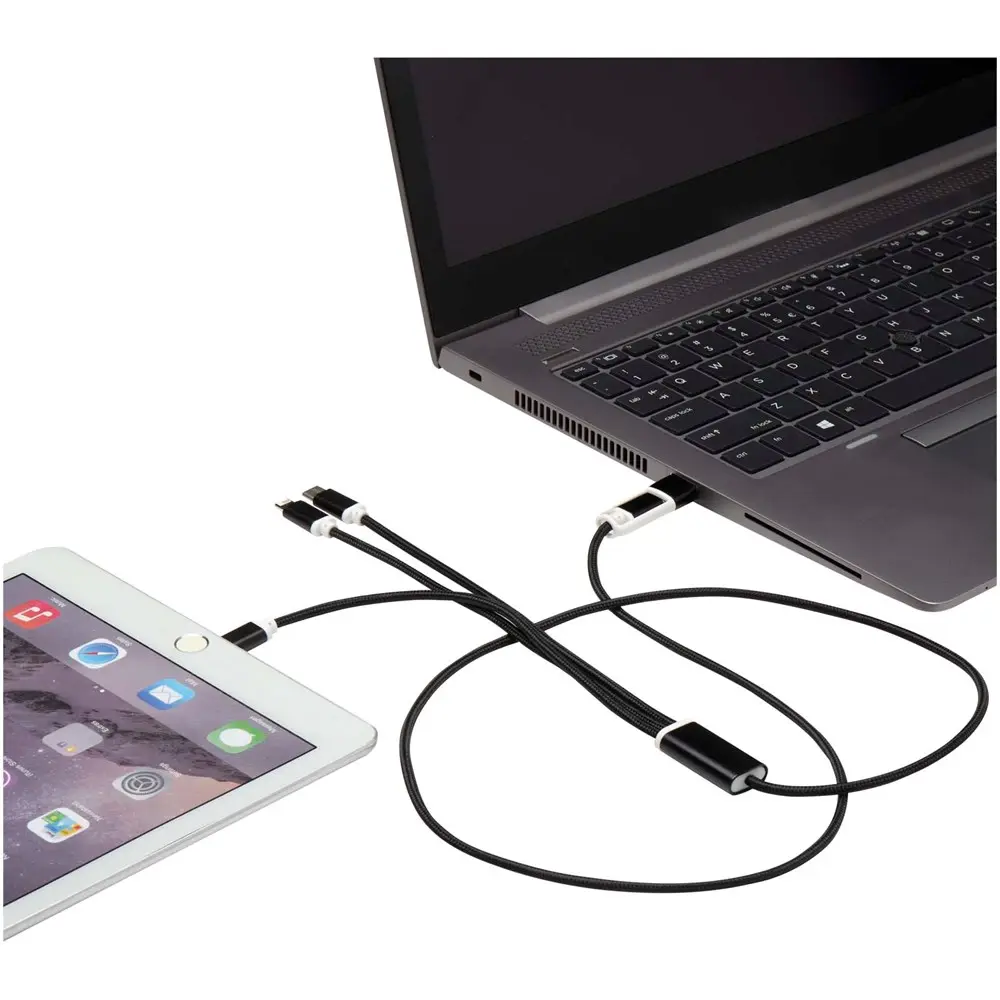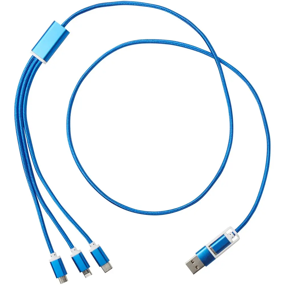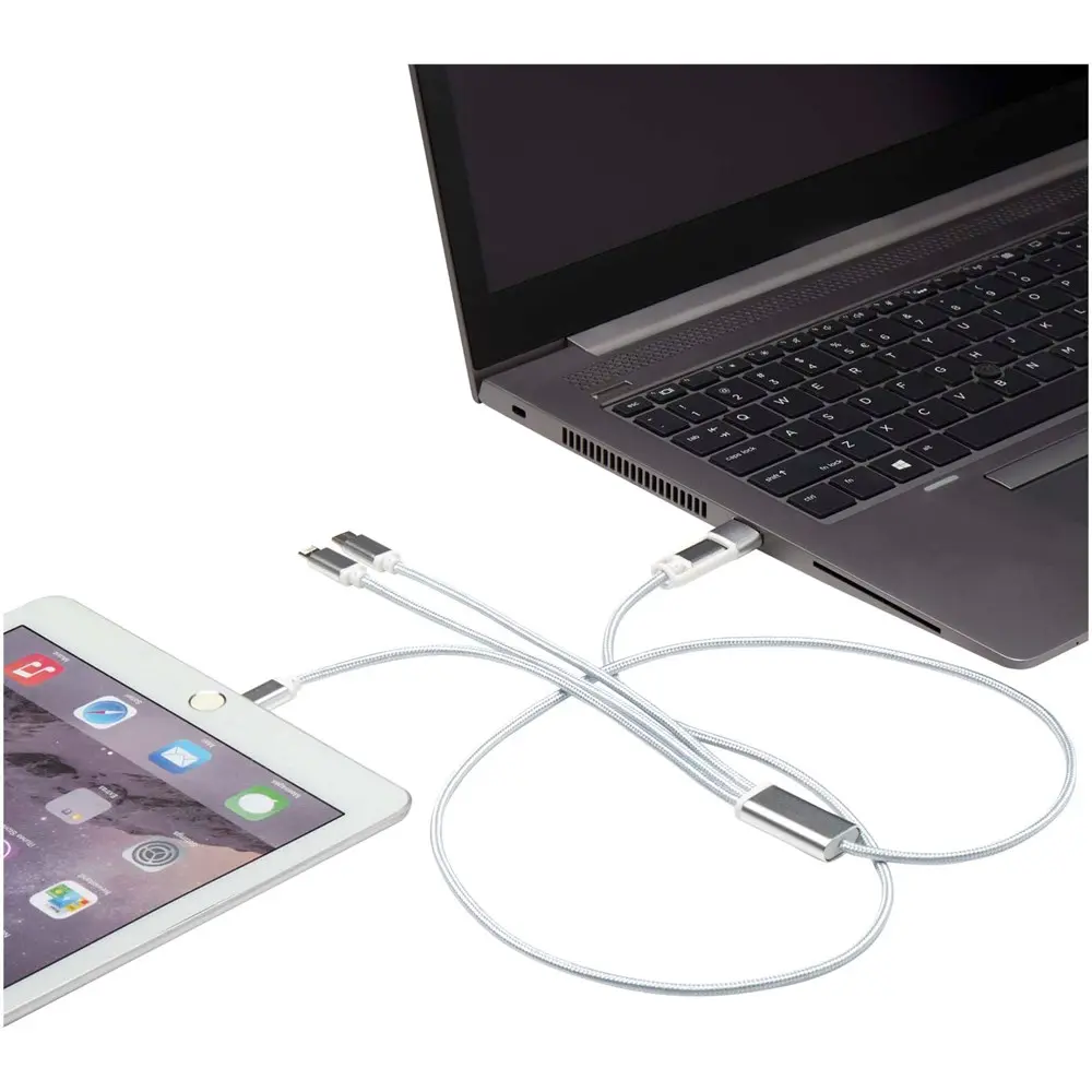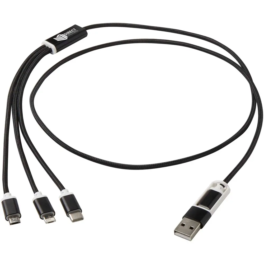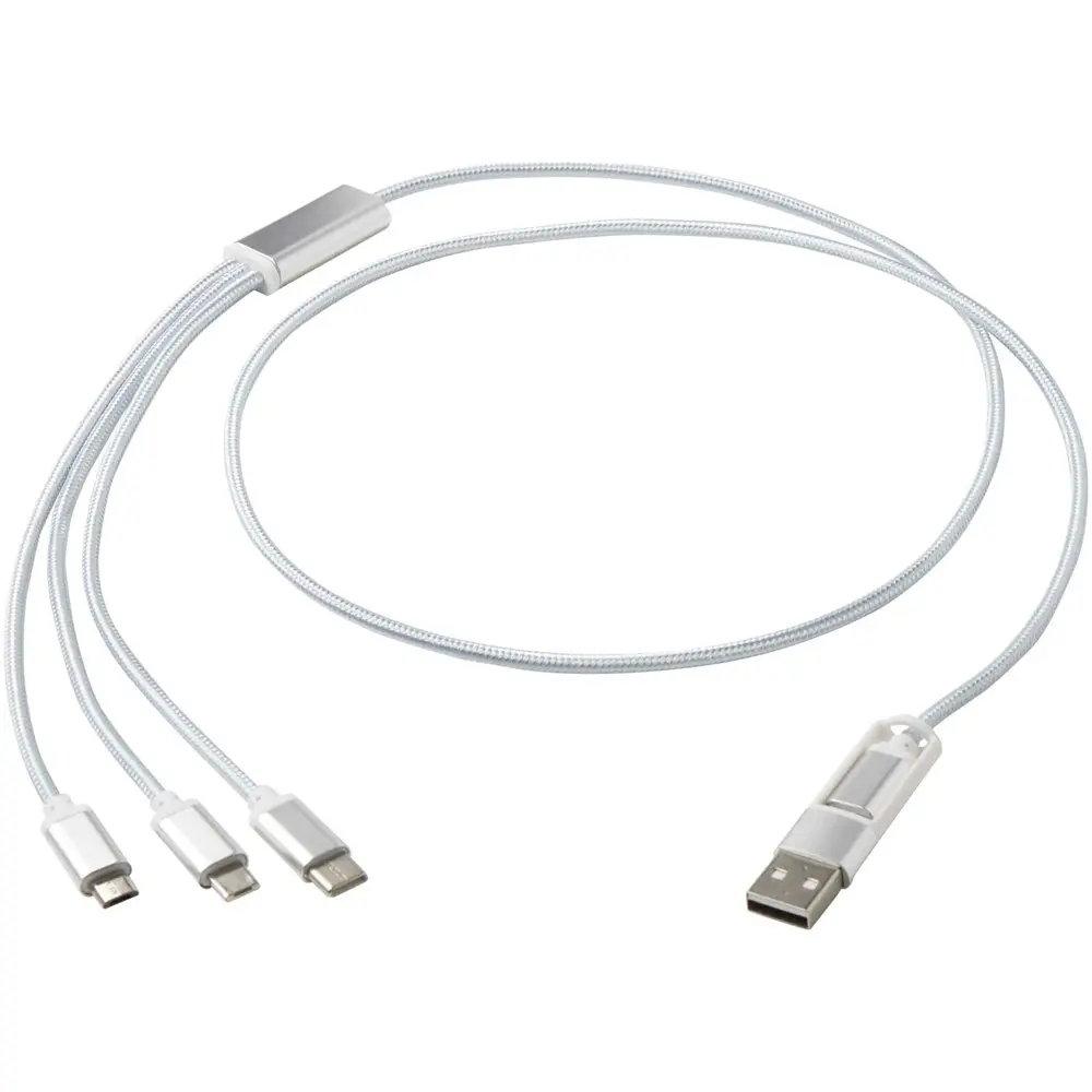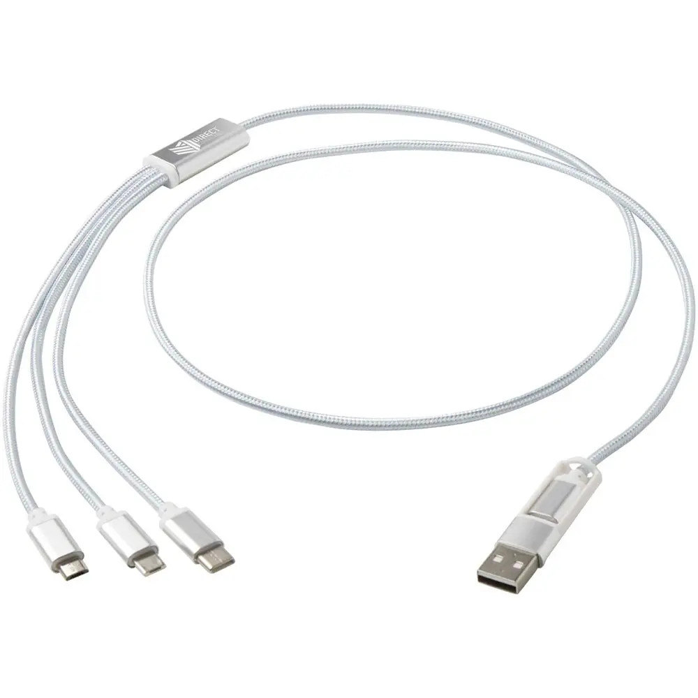 Elevate your brand with the Versatile 5-1 Recycled Aluminium Charging Cable, a must-have promotional gift for marketing professionals and event organizers. This innovative cable boasts USB-A and Type-C inputs, paired with Type-C, Micro USB, and Lightning/Micro USB outputs, ensuring compatibility with most iOS and Android smartphones, cameras, power banks, and earbuds. At 104 cm long, it's portable and practical for on-the-go use.