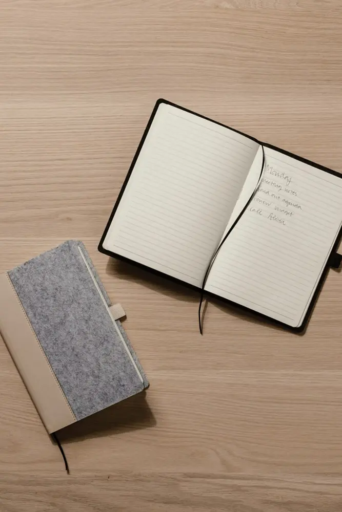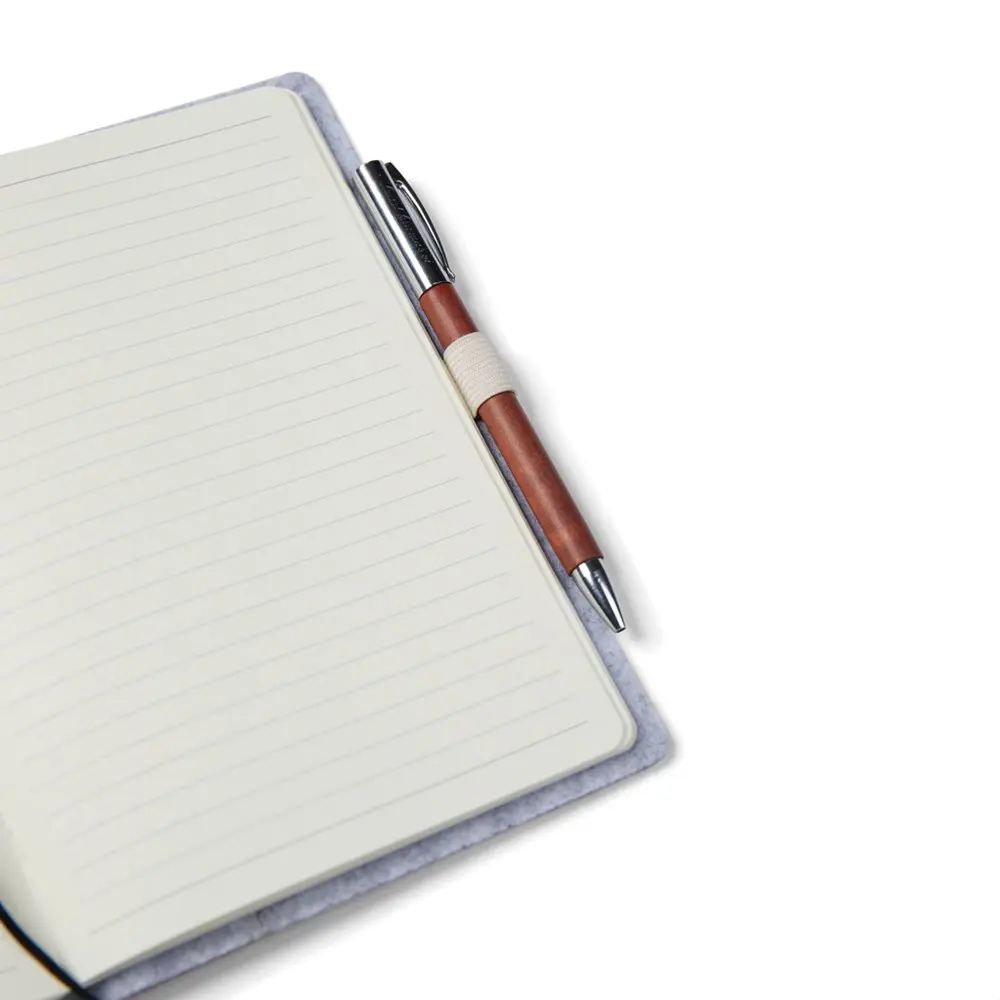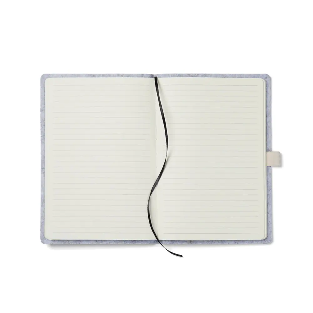 Elevate your brand with the VINGA Albon GRS recycled felt notebook, a sustainable A5 choice perfect for promotional giveaways and events. Crafted from eco-friendly recycled felt with a stylish mélange effect, it features an integrated pen holder and 160 lined pages of 70 gsm recycled paper—ideal for professional note-taking.