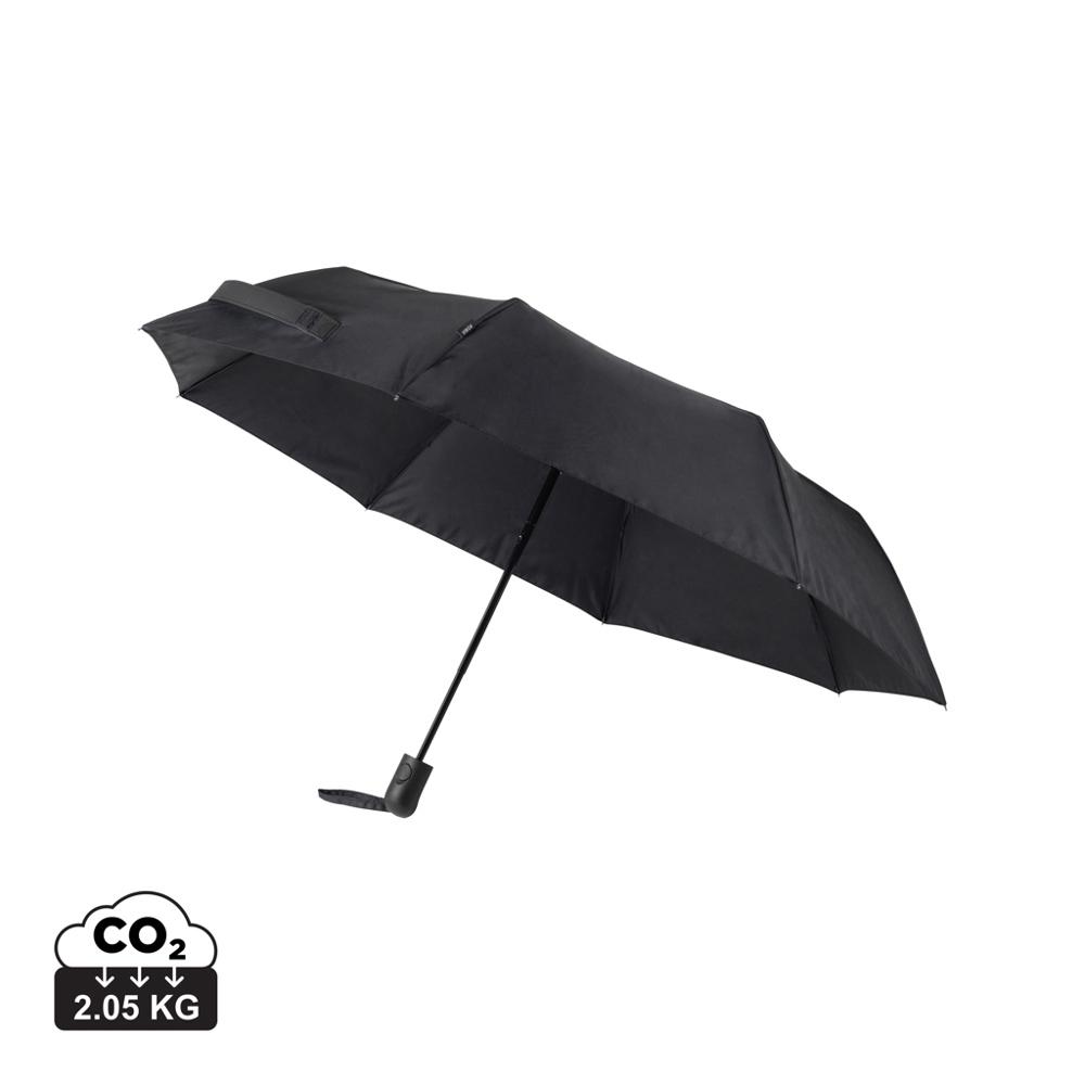 Enhance user experience with the auto-open/manual-close mechanism for quick deployment and the ergonomic ABS plastic handle with rubber finish for a secure, comfortable grip. Includes a protective storage pouch in classic PU fabric. Customize with your logo for high-impact branding that keeps your company top-of-mind during rainy days.