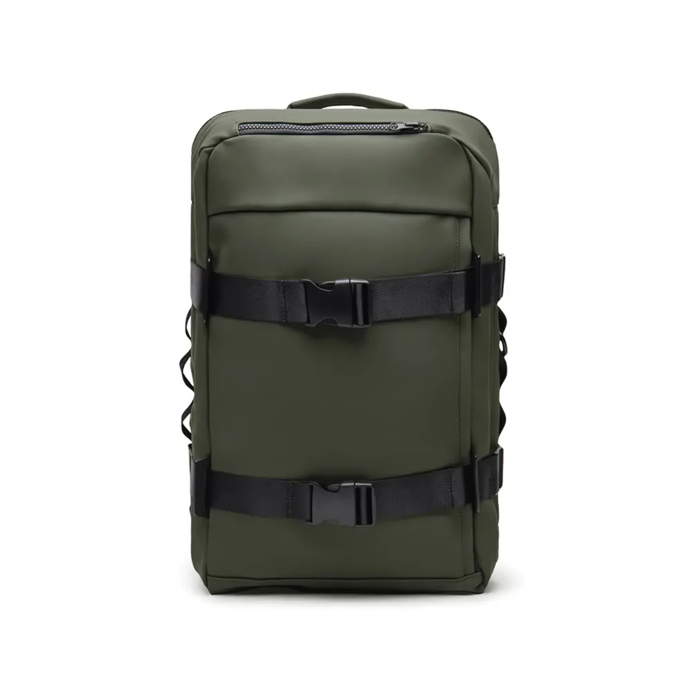 This backpack offers a spacious 33L capacity, fitting laptops up to 15.6 inches, along with a dedicated tablet compartment. It includes two exterior pockets for quick access, a roomy interior mesh section to keep essentials organized, and a side zipper for easy entry to the main compartment. Additional smart details like a sturdy top handle, a carabiner for securing small items, and a clever back strap for trolley attachment ensure effortless use. The mesh backing on shoulder straps and back provides breathability and maximum comfort during commutes or adventures. PVC-free construction and compliance with strict regulations, including AZO dyes, cadmium, formaldehyde, lead, PAHS, PCP, phthalates, and REACH, guarantee safety and quality.