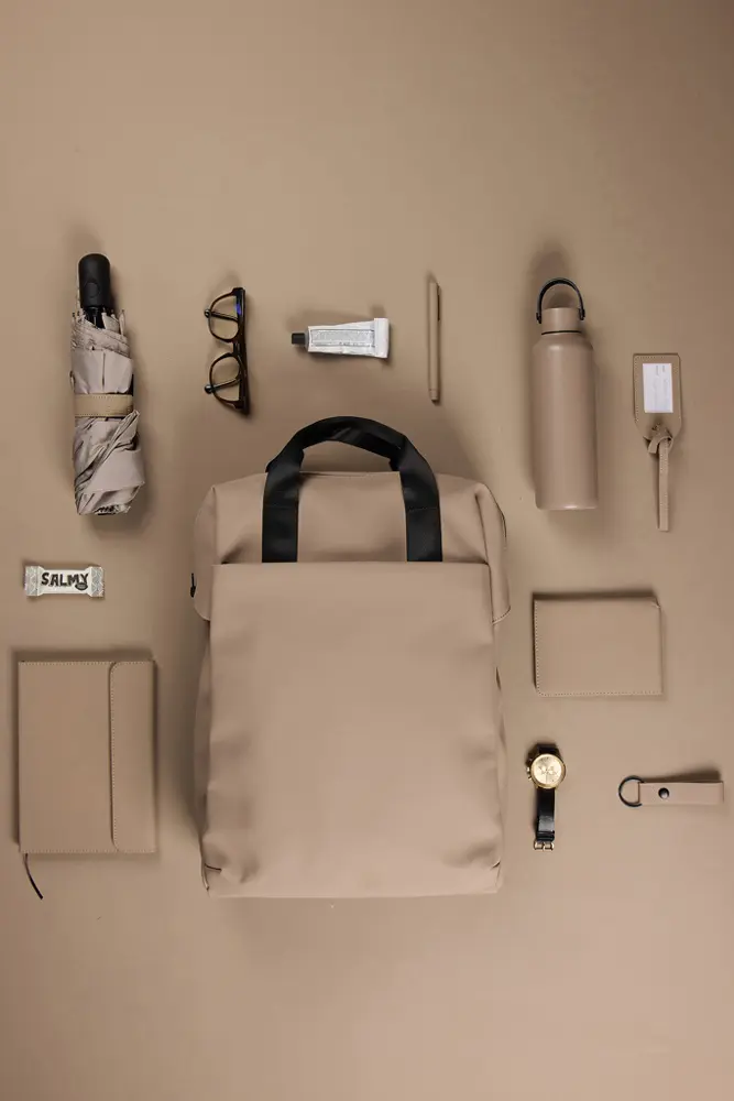 Practical features include a large front pocket for quick access, an inner pocket for organization, and a dedicated bottle holder to stay hydrated. Made from durable polyester with polyurethane accents, it's PVC-free and boasts 19% RCS-certified recycled polyester, ensuring an eco-friendly choice that aligns with sustainable branding.