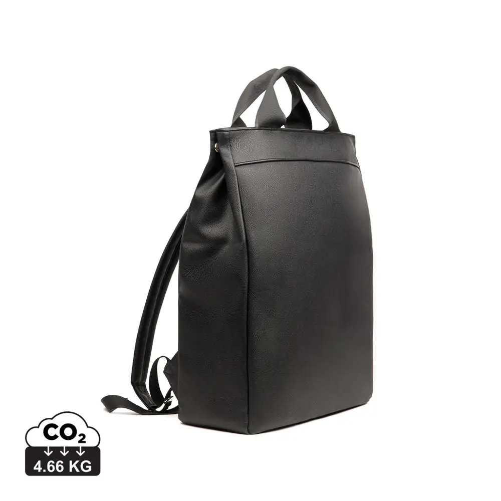 Elevate your brand's promotional efforts with the VINGA Bermond PU Backpack, an ideal customizable corporate gift for logo imprinting. This versatile accessory effortlessly shifts from office to travel, functioning as both a tote and backpack for maximum convenience in busy professional lifestyles.