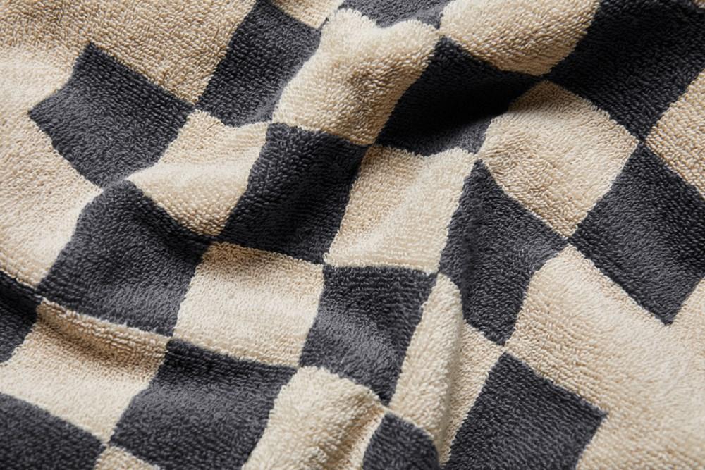 The set includes two generous bath towels (135x165 cm) for luxurious drying and two handy guest towels (65x40 cm) for everyday versatility. The sophisticated modern checkerboard pattern adds a premium touch, making them standout branded gifts that enhance your company's image.