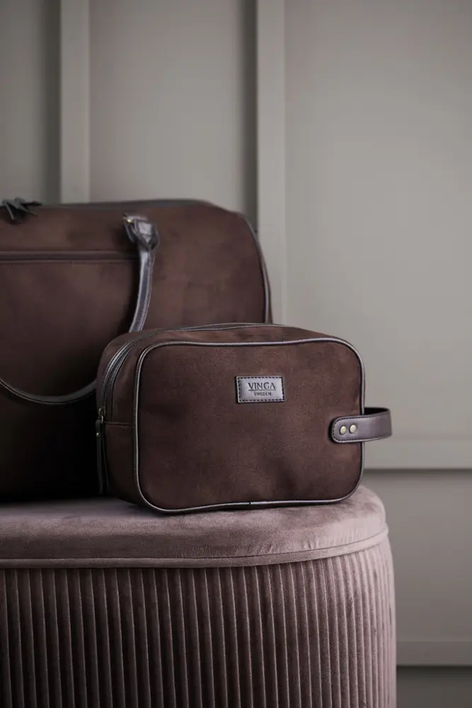 Elevate your brand's visibility with the VINGA Hunton washbag, a classic yet modern essential perfect for promotional giveaways. Crafted from durable polyester with stylish suede imitation and PU leather accents, this PVC-free washbag offers a sophisticated storage solution for hygiene essentials, ideal for travel or daily use. Its handy 4.6L capacity and convenient carry strap with brass details ensure practicality and elegance.