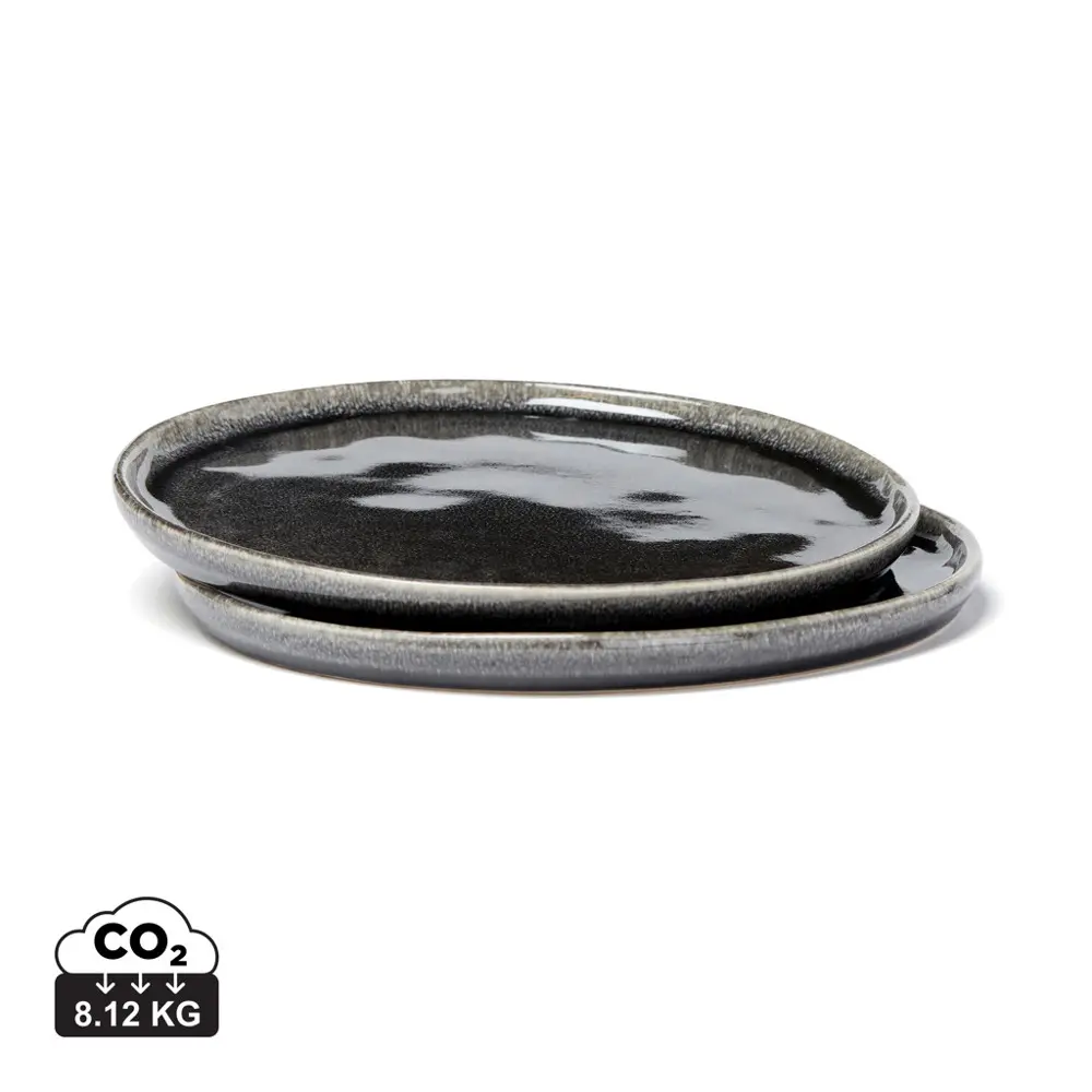 Elevate your brand with the VINGA Nomimono plate set, a duo of 26.5 cm stoneware plates perfect for personalized promotional gifts. Handcrafted and triple-glazed for a one-of-a-kind rustic finish, these plates blend Japanese and Scandinavian aesthetics, making each piece uniquely inspiring for serving or display.