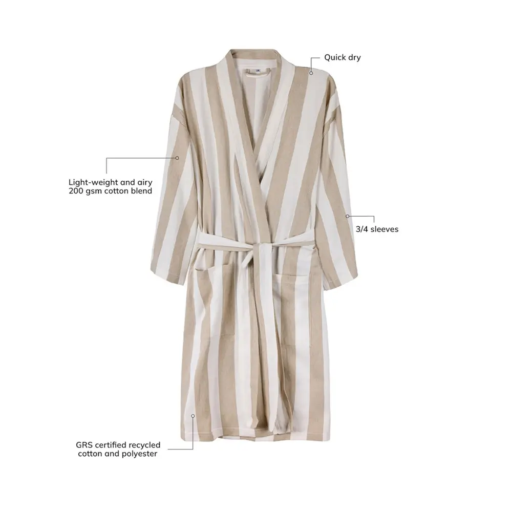 Experience the perfect balance of comfort and quick-drying convenience in this classic hammam robe. Featuring a neat collar, front pockets, 3/4 sleeves, and an adjustable waist belt, it provides a flattering fit for sizes L/XL. The airy design makes it suitable for beach outings, spa days, or casual home wear, encouraging long-term engagement with your brand's personalized imprint.