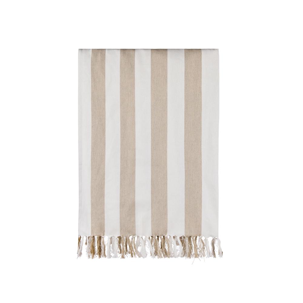 Elevate your brand's promotional giveaways with this stylish hammam beach towel, ideal for marketing campaigns, events, and client appreciation gifts. Featuring a timeless two-colored striped pattern with fringes on the short sides, it adds a touch of elegance to any beach or poolside setting.