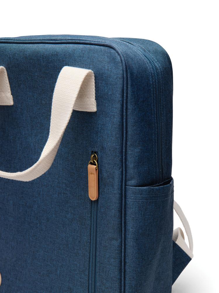 Designed for practicality, it features a convenient front zip pocket, two open side pockets for quick access, and an internal organizational pocket in the spacious main compartment. Antique brass metal details add a sophisticated touch, making it an ideal canvas for custom logo printing to boost your marketing efforts.