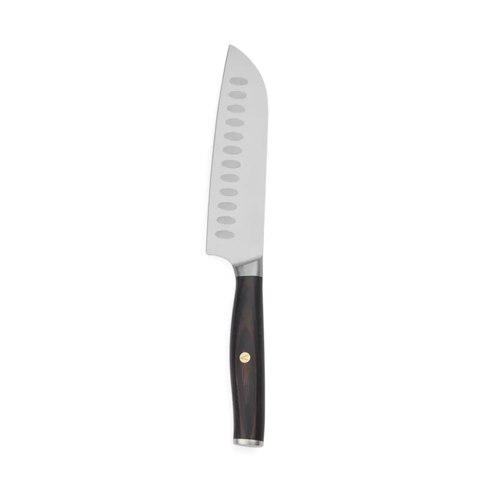 Crafted from premium 5Cr15Mov stainless steel, this santoku knife ensures exceptional durability and long-lasting sharpness. The scalloped blade design minimizes food adhesion, allowing for effortless slicing and dicing of fruits, vegetables, and proteins. The pakkawood handle offers a comfortable, ergonomic grip that feels secure even during extended use, promoting safety and precision in the kitchen.