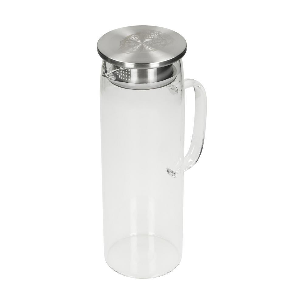 Elevate your brand with this premium borosilicate glass carafe, featuring durable stainless steel and silicone elements for superior performance. With a 1.5l capacity and 90mm diameter, it's ideal for serving water, juices, or iced tea at events, offices, or client meetings.