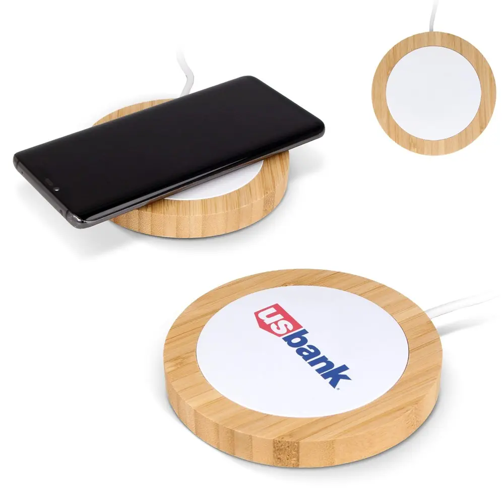 Elevate your brand's eco-conscious image with our Wireless Charger made from sustainable bamboo and recycled ABS material. Perfect for marketing professionals and event organizers, this Qi-compatible charger supports mobile phones with outputs of 5W, 7.5W, 10W, and 15W, ensuring versatile, efficient charging. Built-in over-temperature protection keeps devices safe, while the included 1-meter cable adds convenience for on-the-go use.
