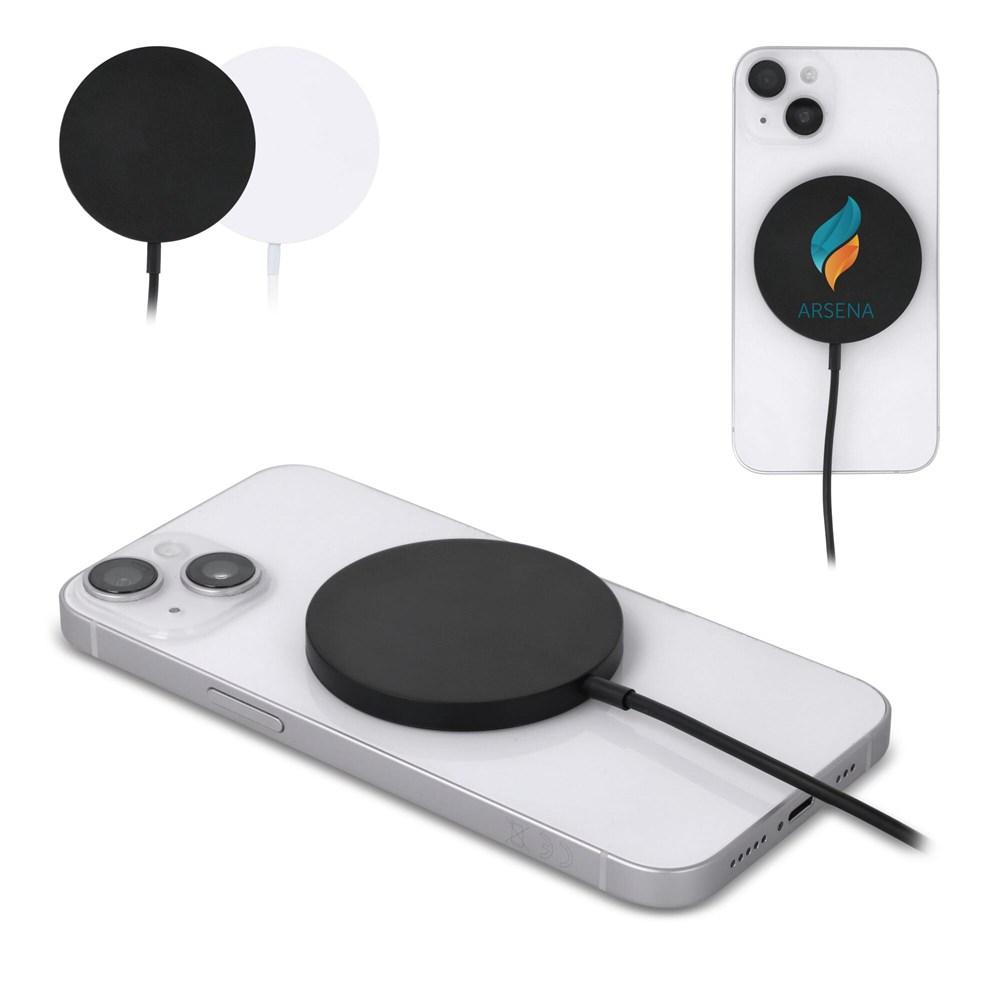 Elevate your promotional giveaways with this eco-friendly wireless magnetic charging pad, crafted from recycled ABS plastic. Deliver fast 15W charging for smartphones, fully compatible with MagSafe technology for seamless, magnetic alignment.
