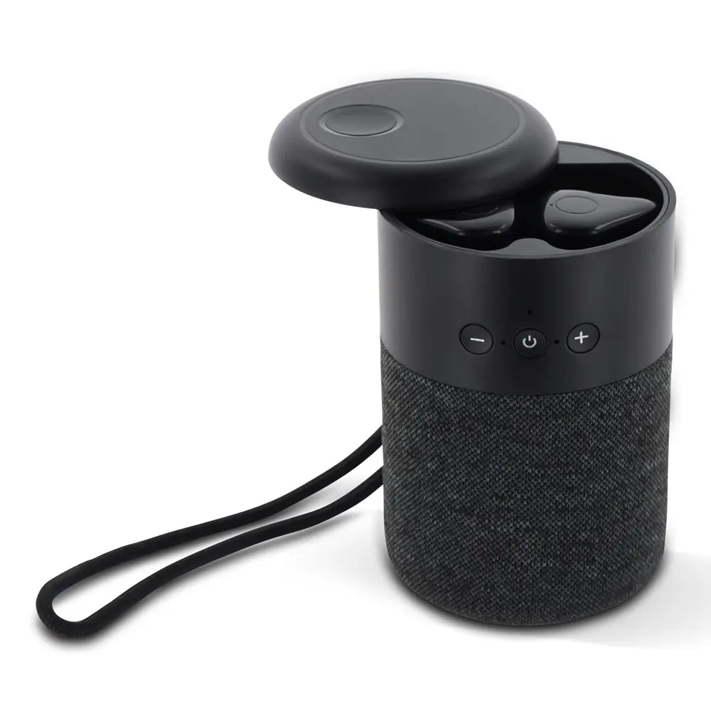 Discover the perfect blend of functionality and style in this 2-in-1 audio device, featuring a wireless speaker paired with true wireless stereo (TWS) earbuds. Ideal for sharing music during team meetings or events, or enjoying tunes privately on the go, it adapts seamlessly to any scenario.