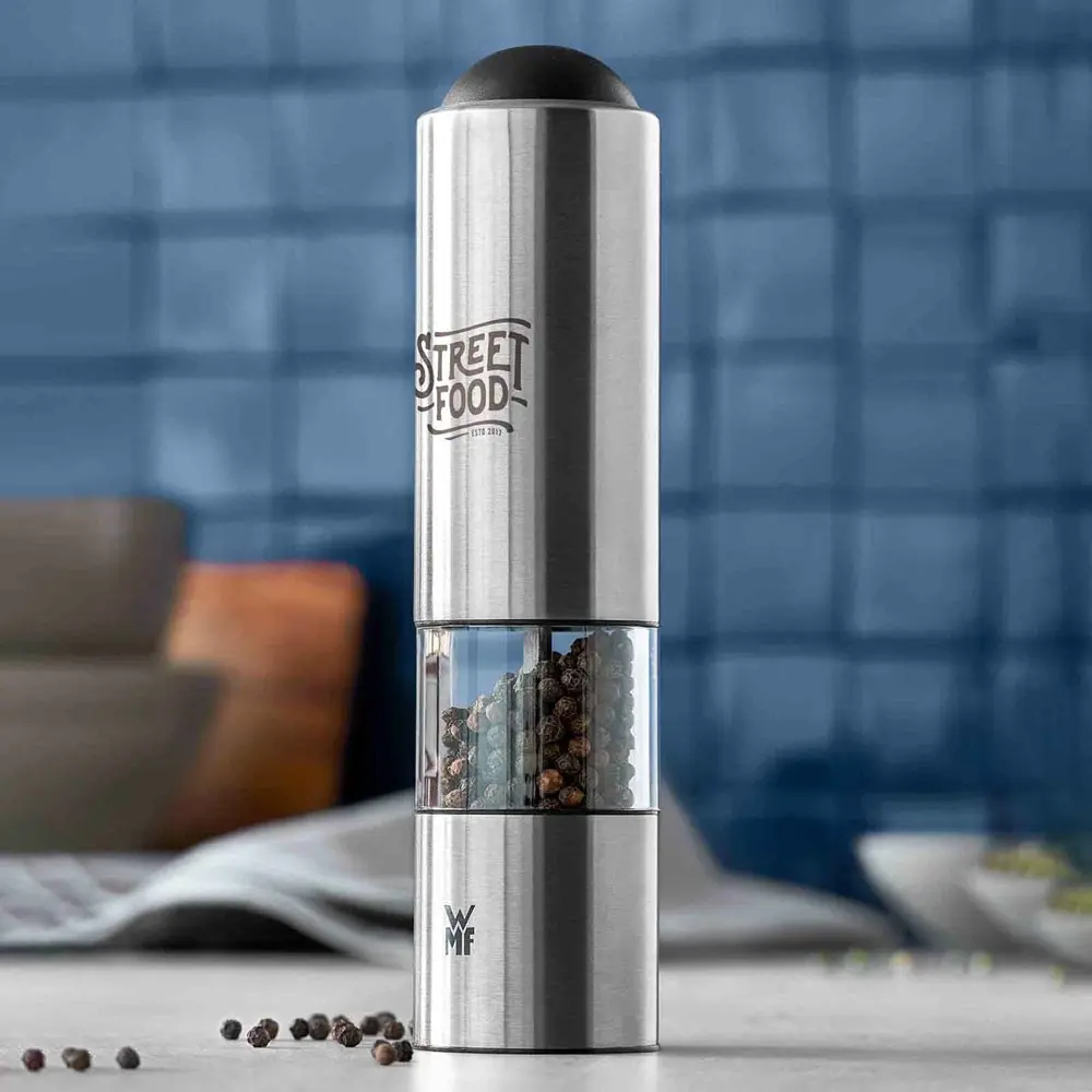 Elevate your corporate gifting with the WMF Electric Spice Mill, a premium tool that delivers fresh-ground spices effortlessly at the push of a button. Ideal for marketing professionals and event organizers, this mill features a durable ceramic grinding mechanism—harder than metal, food-safe, and resistant to wear, corrosion, and abrasion—for consistent, high-quality results every time.