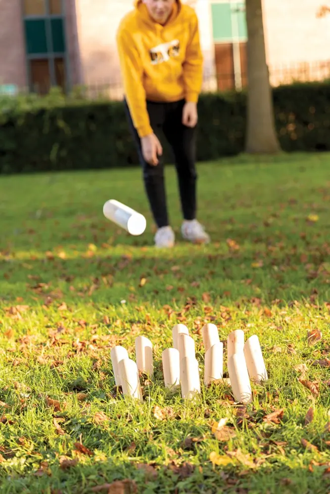 Crafted from sturdy, sustainable Pine wood, this bio-friendly set includes 12 pins and one throwing cylinder, neatly packed in a cotton pouch with a rulebook for easy setup anywhere. Ideal for bulk personalization with your logo, it doubles as an engaging promotional tool that keeps your brand in play long after the event. Complies with key EU safety and environmental standards for peace of mind.